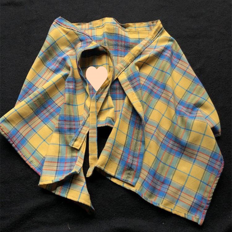 올해 유행하는 여성용 황색 체크무늬 커튼, 남성용 원피스 레이스업 노란색 체크무늬 커버업, 남성용 밑단 셔츠스토어 가기