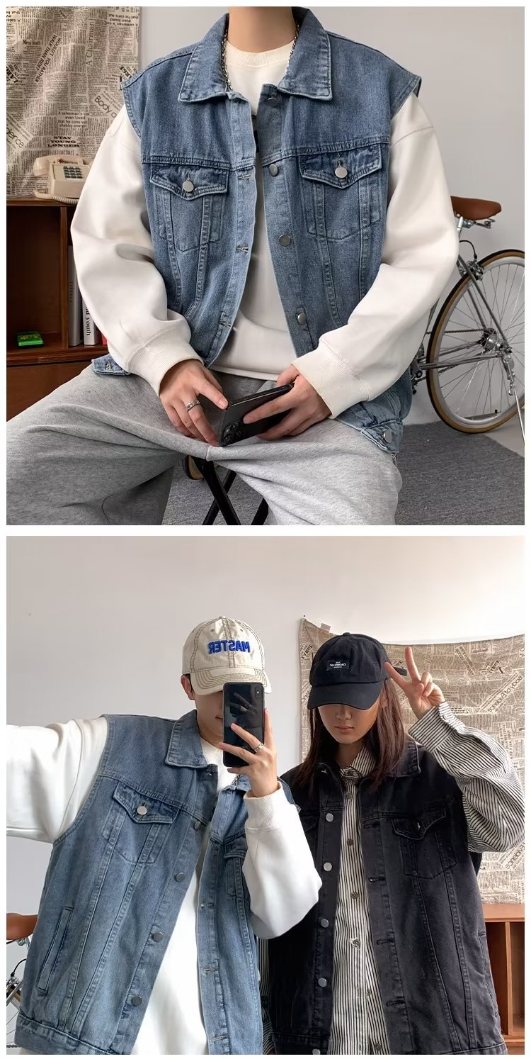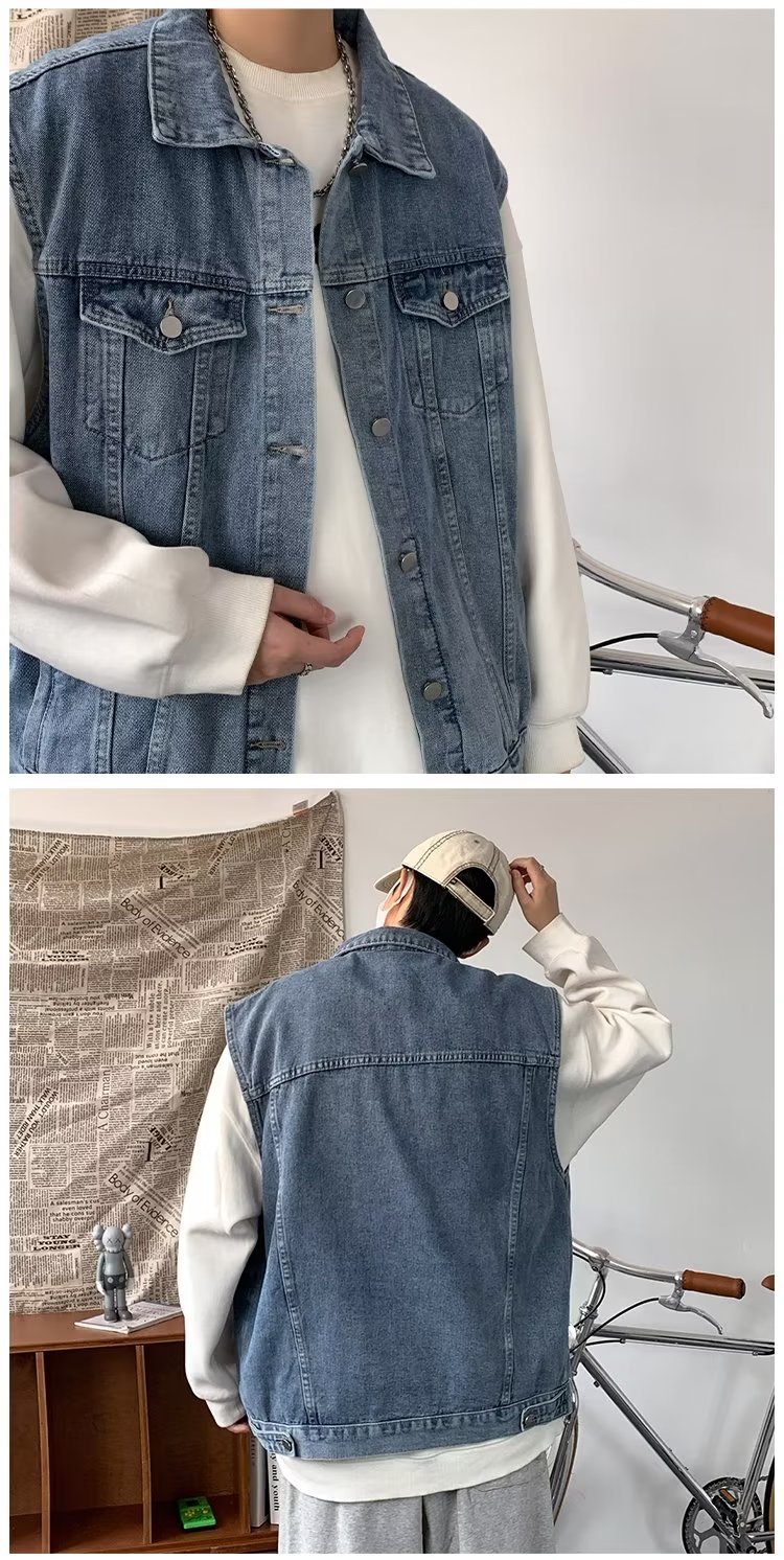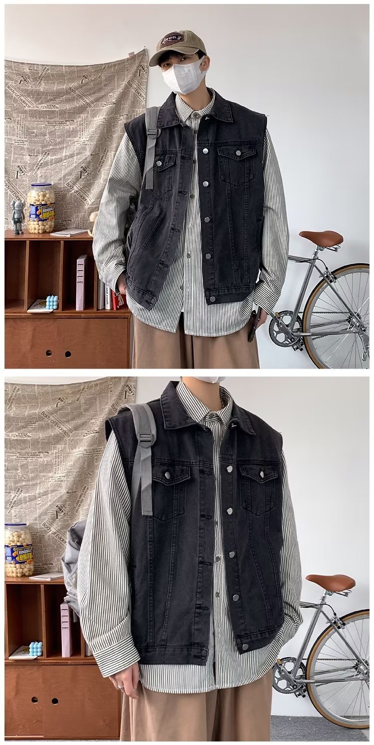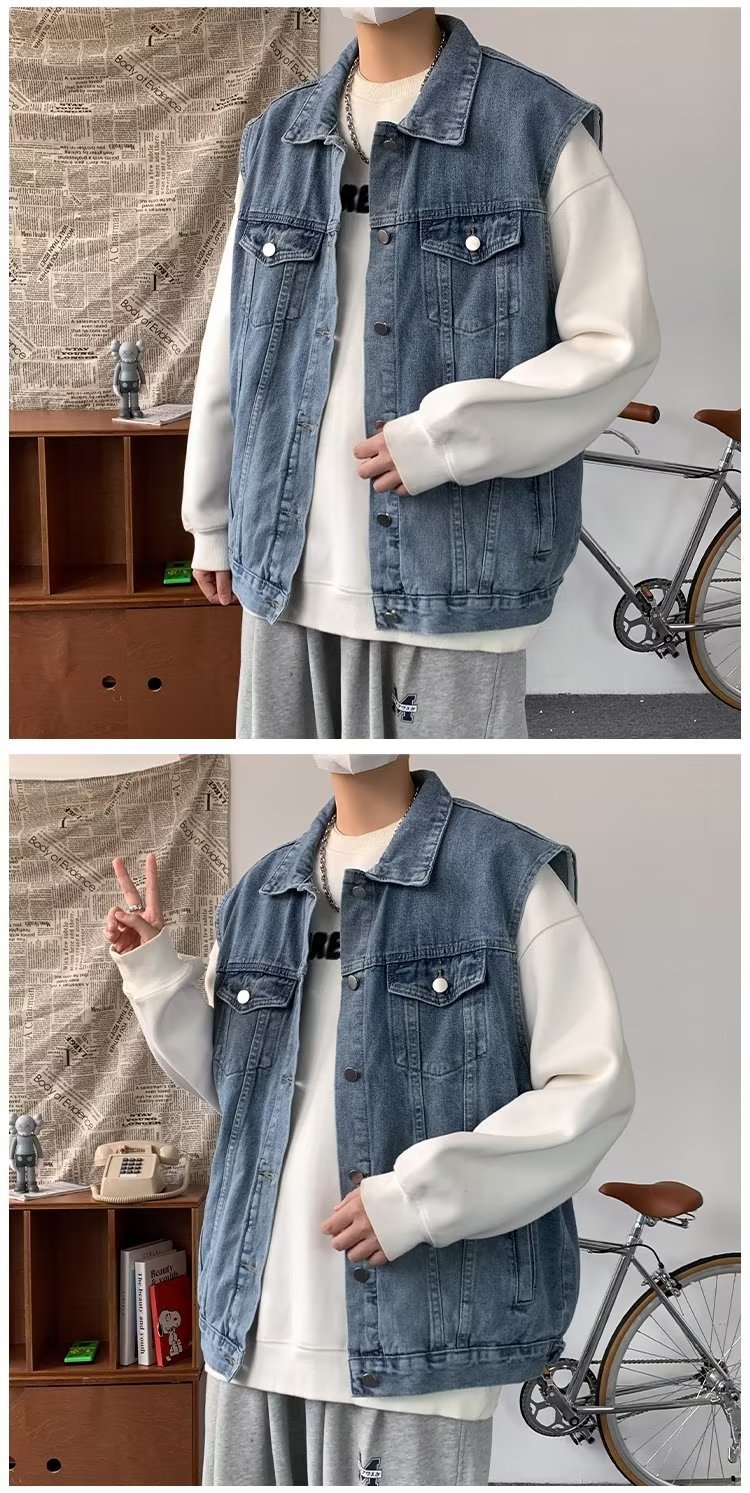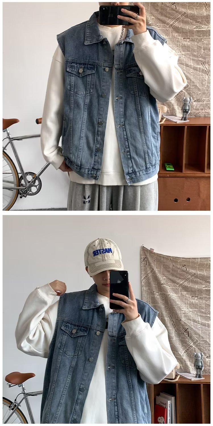 데님 조끼 남성 봄 트렌디 브랜드 ins 루즈하고 핸섬한 하라주쿠 스타일 학생 다용도 민소매 조끼 재킷스토어 가기