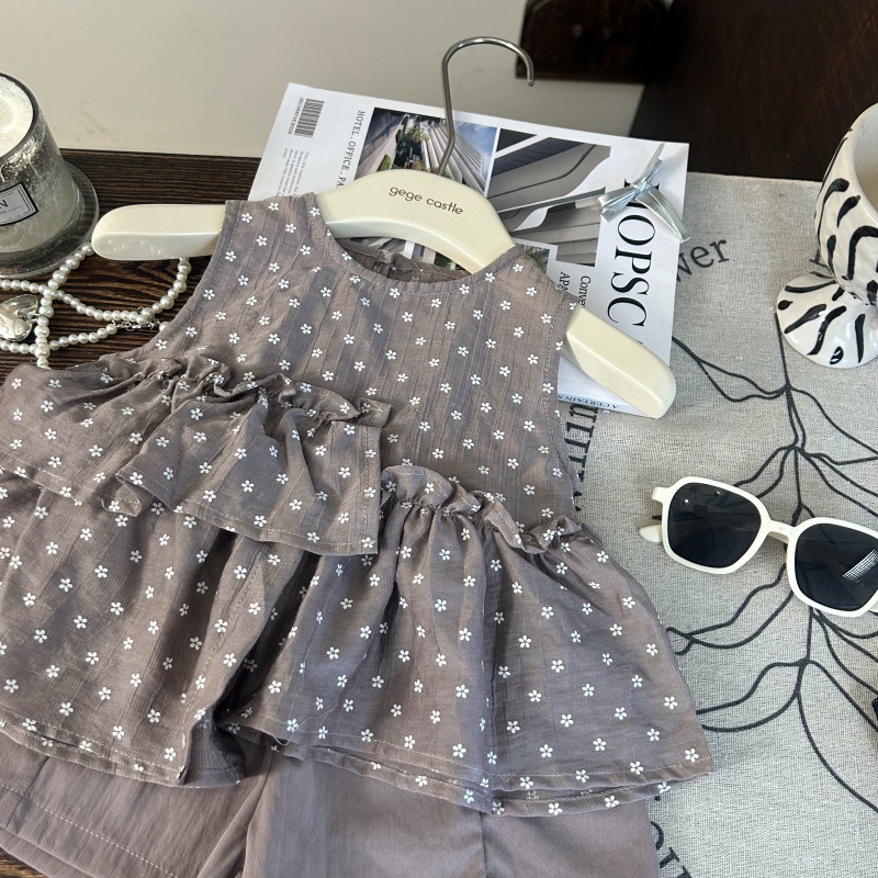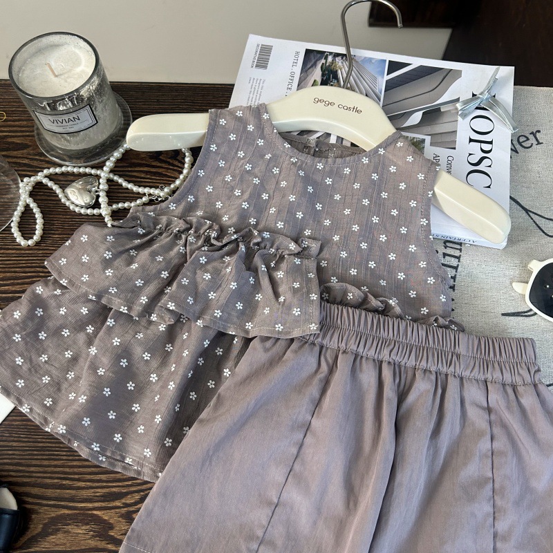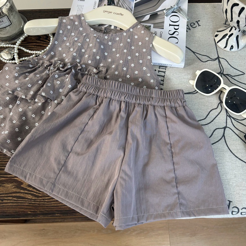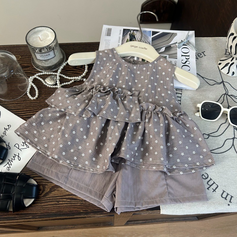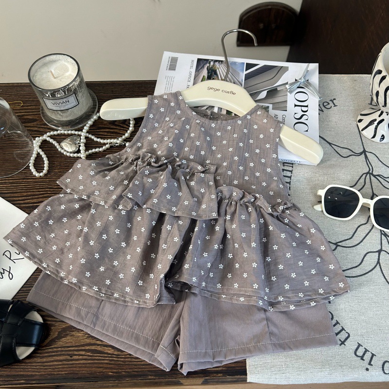 한국 아동복 2025 신작 여름 여아 불규칙 꽃무늬 베이비돌 셔츠 아동 캐주얼 반바지 투피스 트렌디 세트