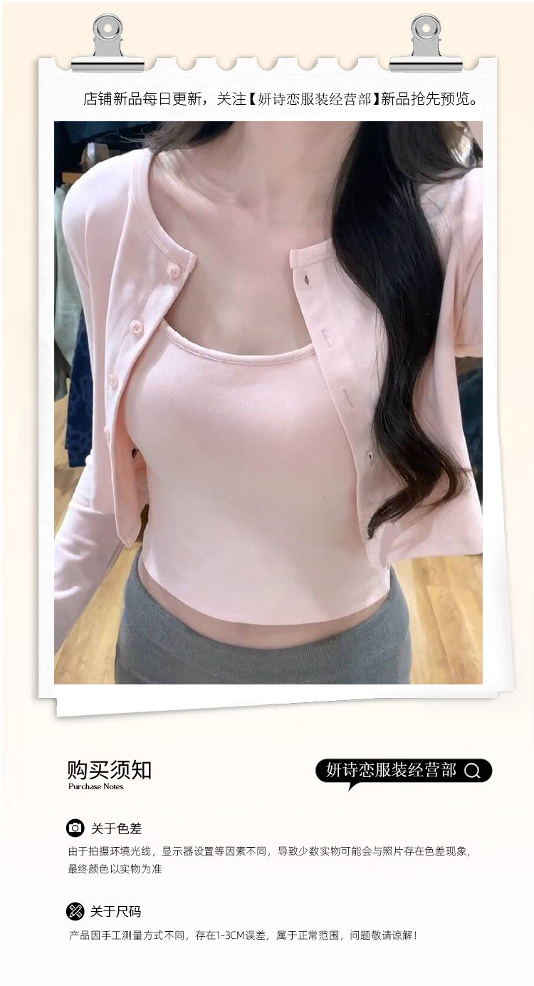 한국 스타일 핑크 젠틀 스타일 여성용 긴팔 티셔츠 초가을 신작 슬림핏 탑 투피스 세트스토어 가기