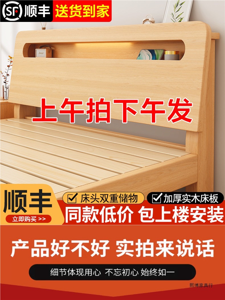 경제적인 싱글 침대 원목 침대 직접 판매 미 심플 모던 홈 더블 침대 임대 룸 프레임 공장 소나무스토어 가기