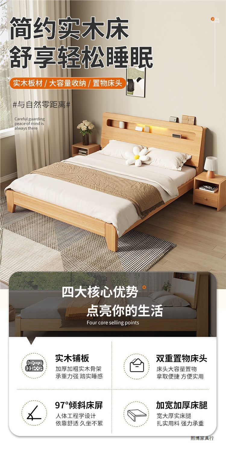 • 두꺼운 통나무 침대 + 침대 옆 탁자 1개 [집으로 배송]
