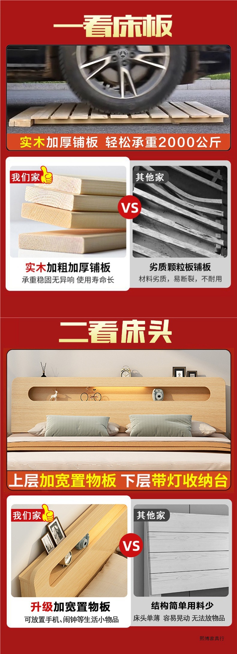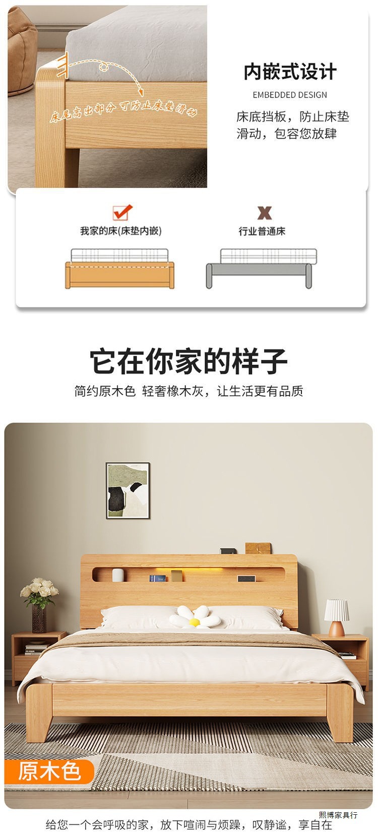 • 두꺼운 통나무 침대 + 매트리스 + 침대 옆 탁자 1개 [홈 패키지 설치]
