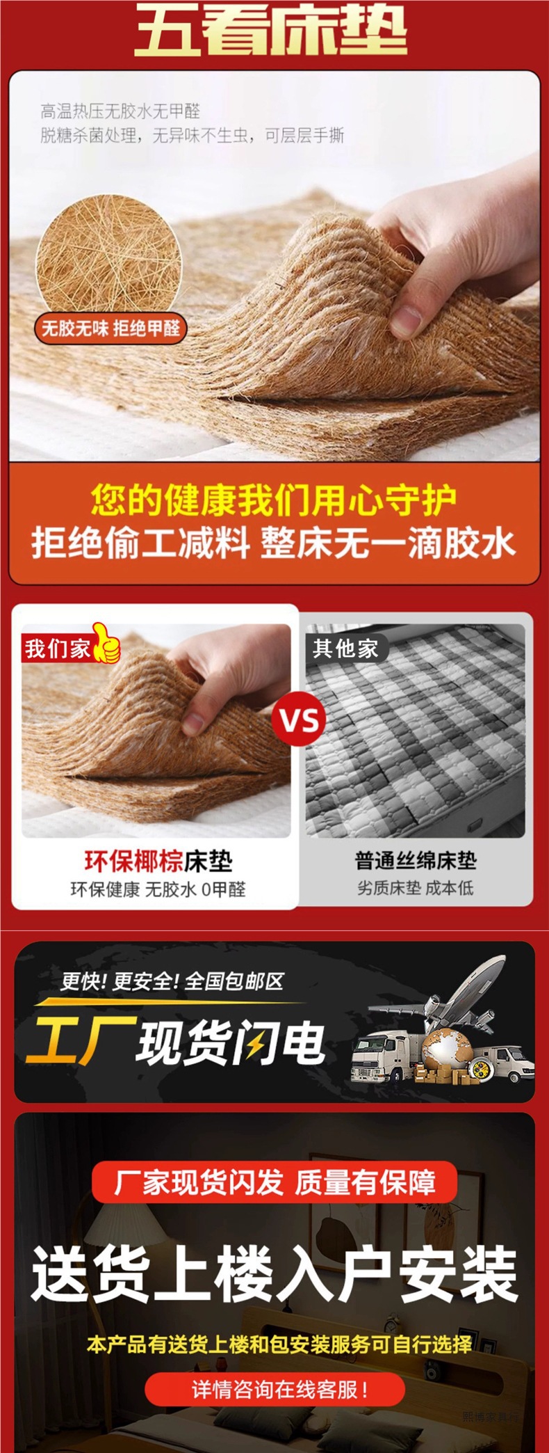 • 두꺼운 통나무 침대 + 코코넛 야자 매트리스 [집으로 배송]