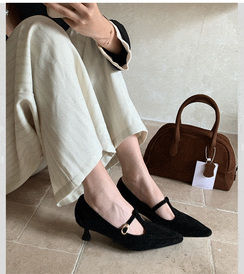 프렌치 포인티드 토 하이힐 메리제인 여성화 작은 굽 싱글 슈즈 여성 2024 봄 가을 새로운 기질 스틸레토 힐 작업화