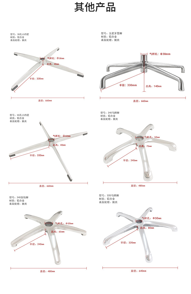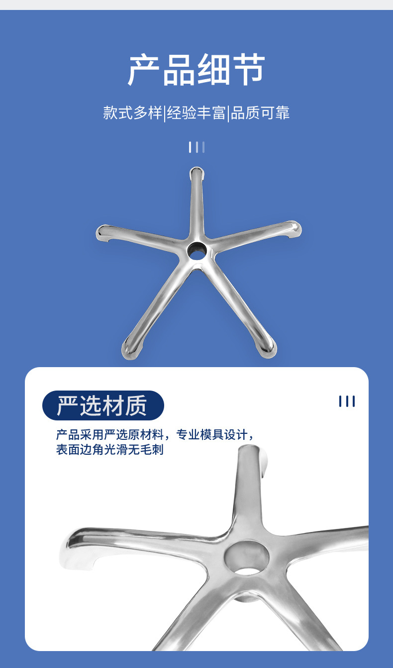 알루미늄 합금 5각 발대, 현대적인 간단한 사무실 의자, 5각 스탠드 회전 의자, 알루미늄 합금 5각 발 크로스보더스토어 가기