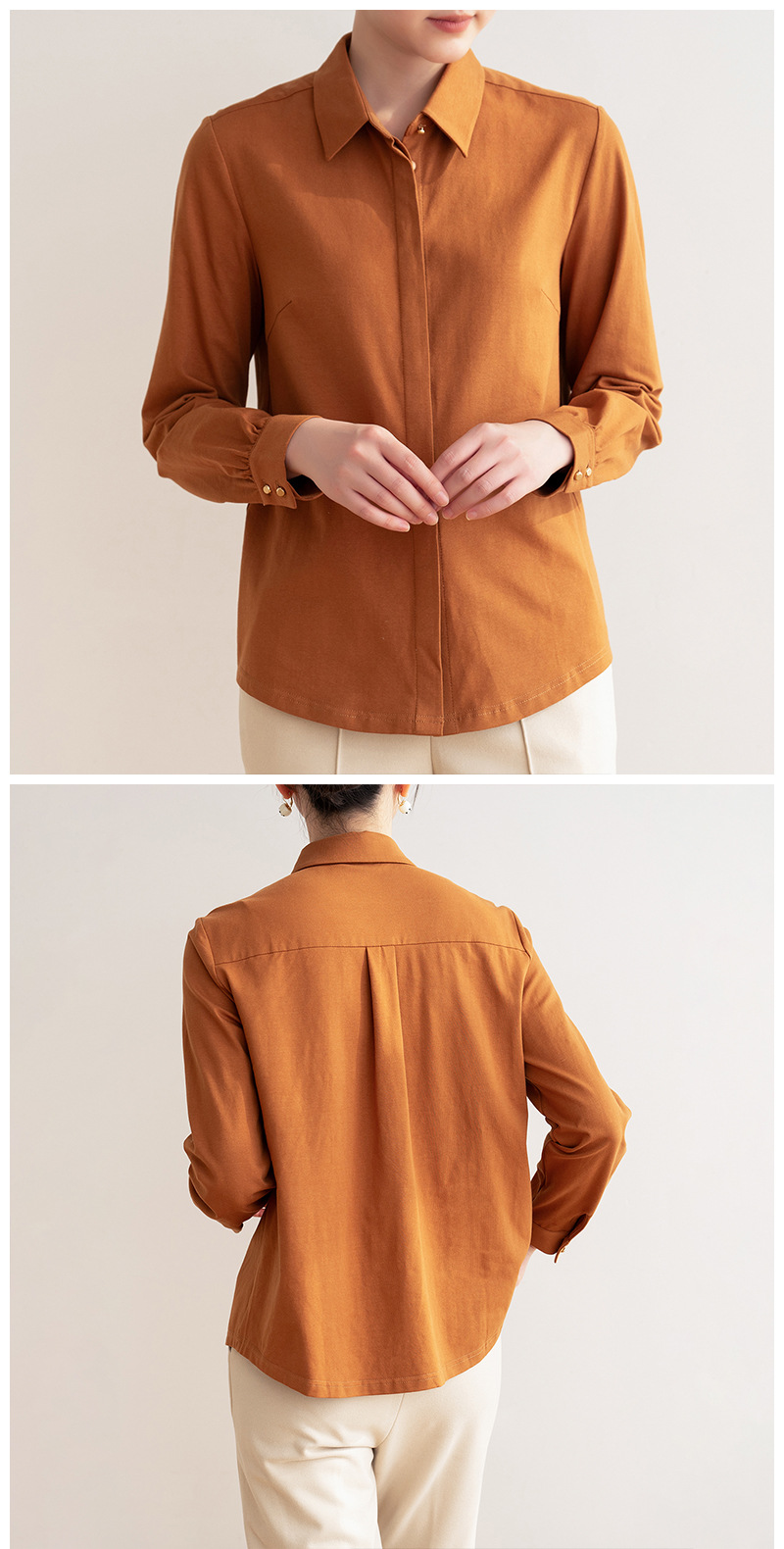 긴 스테이플 코마면 폴로 칼라 기본 스타일 봄 가을 긴팔 셔츠, 직장 출퇴근용 다용도 순면 베이스 셔츠 여성용스토어 가기
