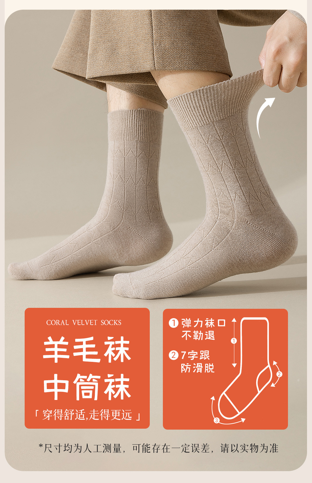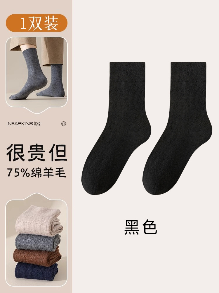 메리노 75% 순수 울 양말 남성 가을, 겨울 중간 튜브 따뜻한 플러스 벨벳 두꺼운 남성 겨울 캐시미어 스타킹