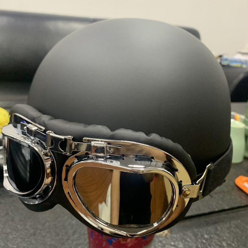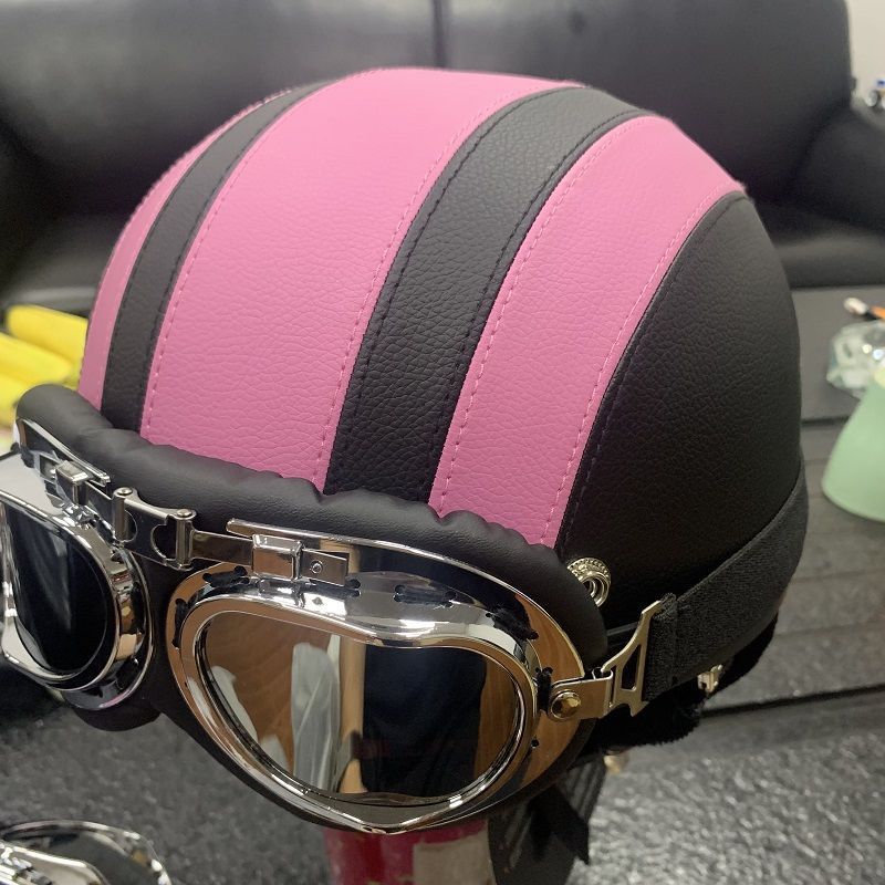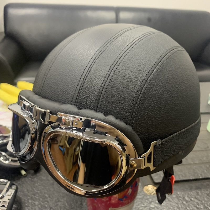 • 블랙과 브라운 PU 가죽 헬멧(은도금 안경) 스카프 스타일