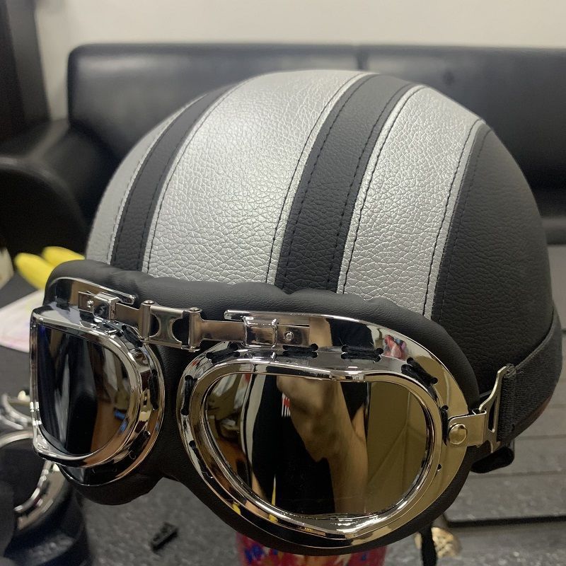 • 블랙 실버 PU 가죽 헬멧 (은도금 안경) 스카프 스타일