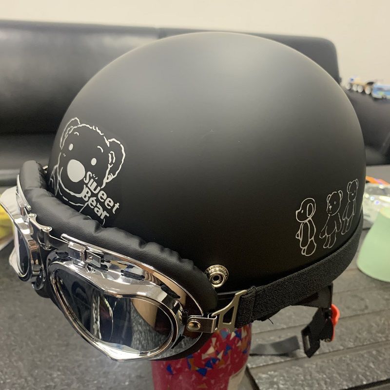 • 퓨어 블랙 PU 가죽 헬멧(은도금 안경) 스카프 스타일
