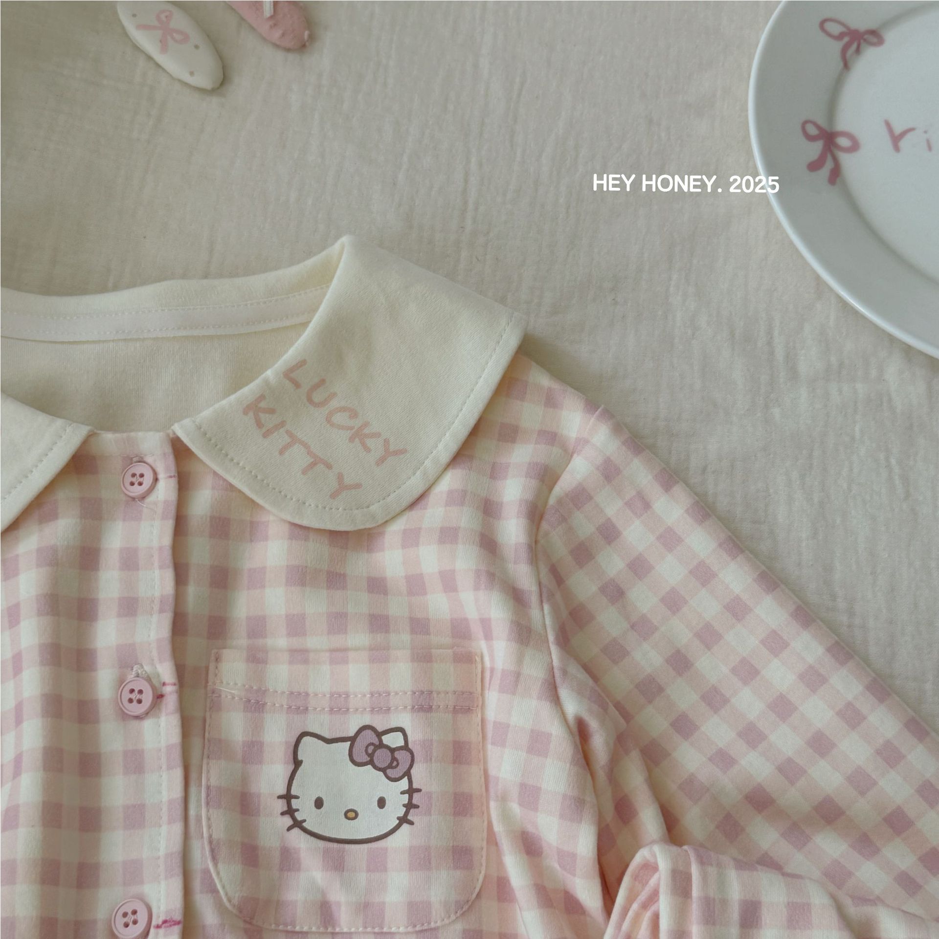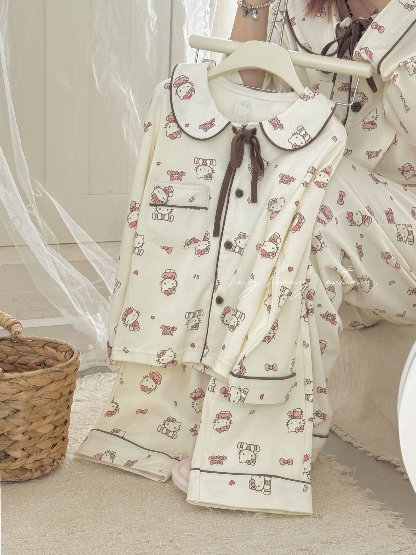 Hey Sweetheart Size Roll 25 봄과 가을 공주 소녀 한국 단일 행 오픈 버튼 투피스 잠옷 세트 홈웨어스토어 가기