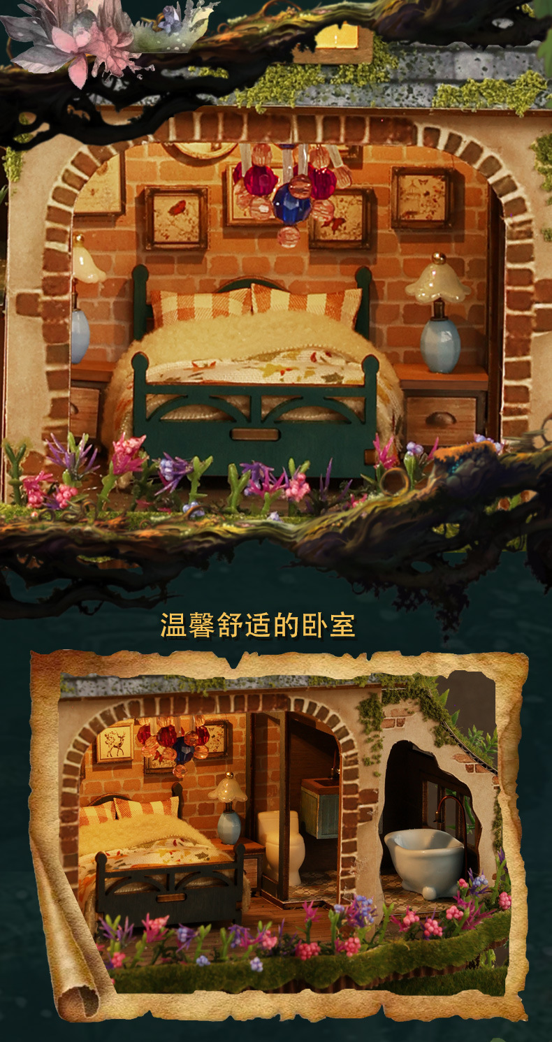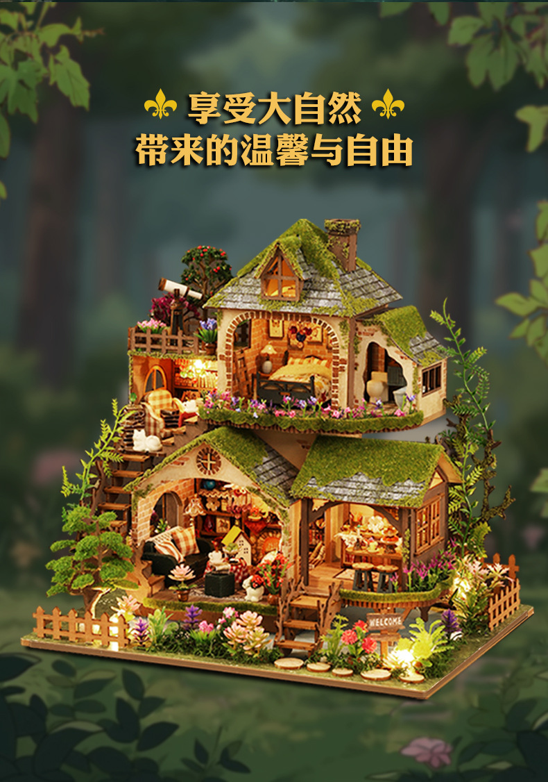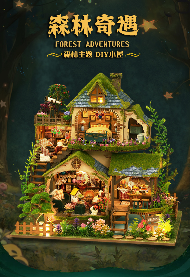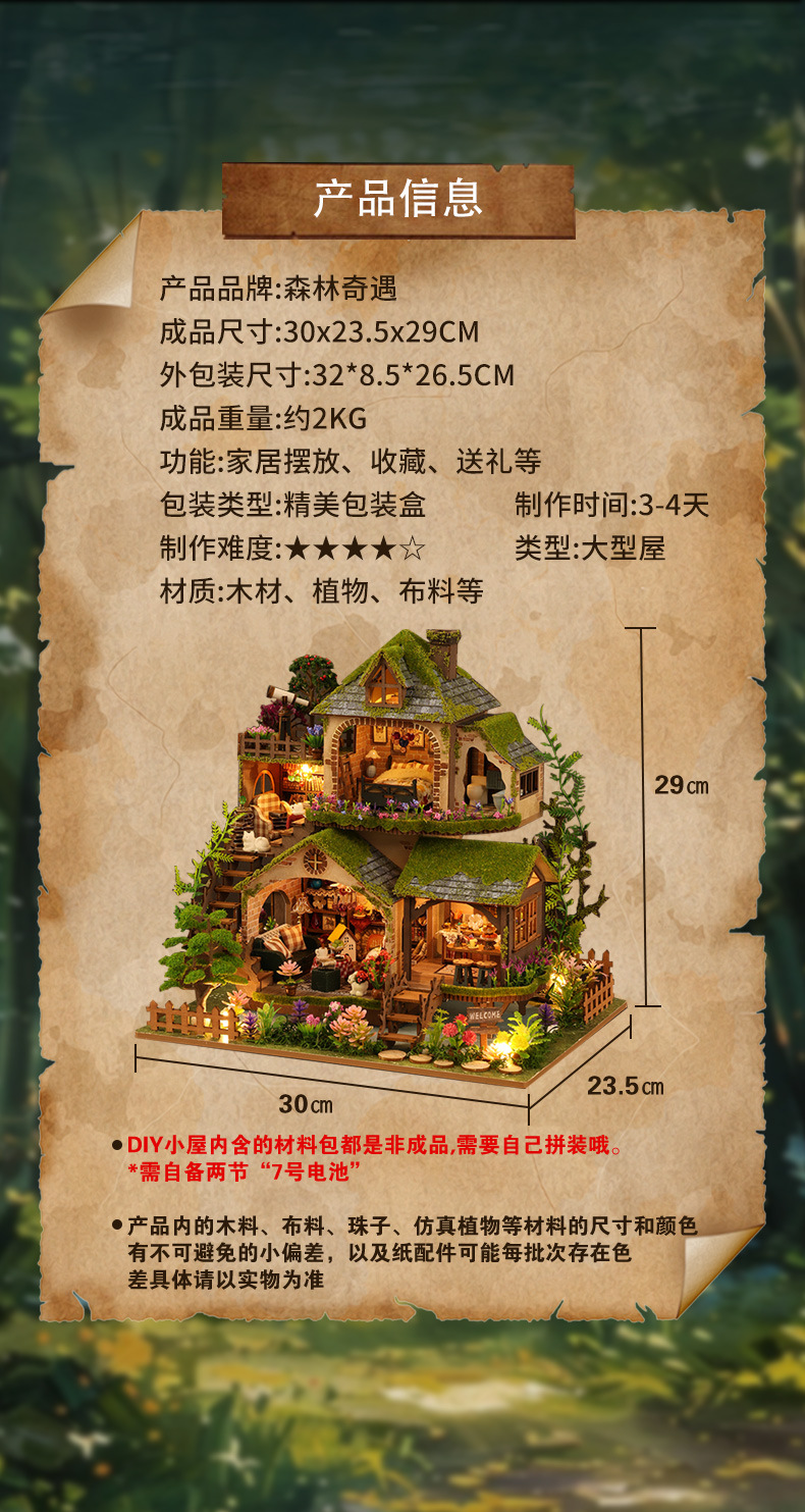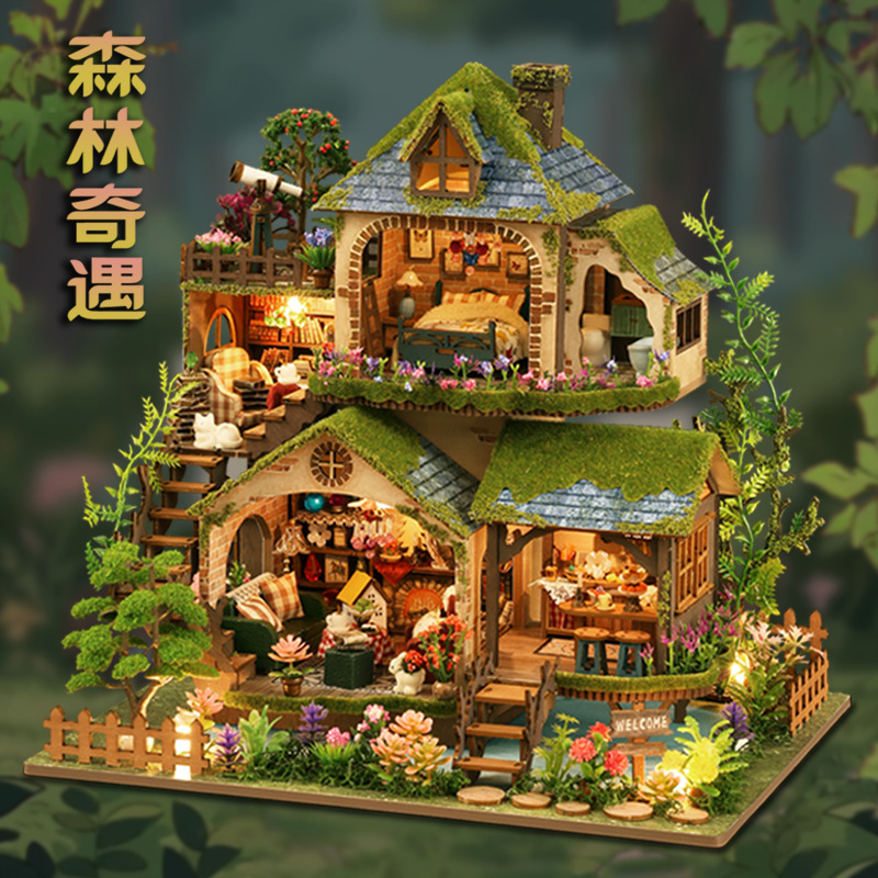 마법의 숲 모험 미니어처 장면 캐빈 3D 입체 DIY 조립 장면 하우스 빌라 장식품 선물