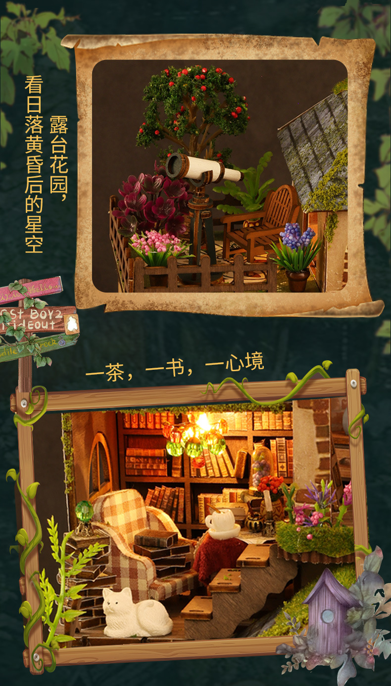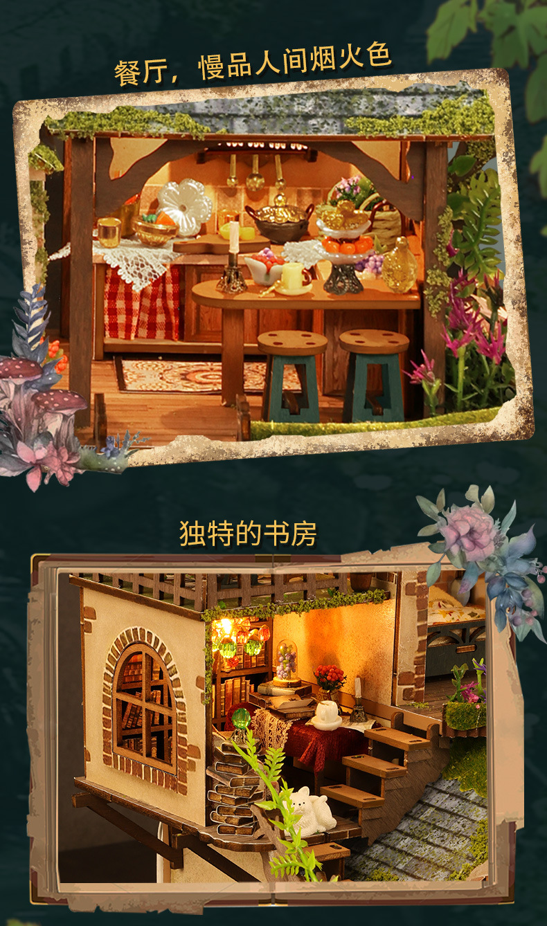 마법의 숲 모험 미니어처 장면 캐빈 3D 입체 DIY 조립 장면 하우스 빌라 장식품 선물스토어 가기