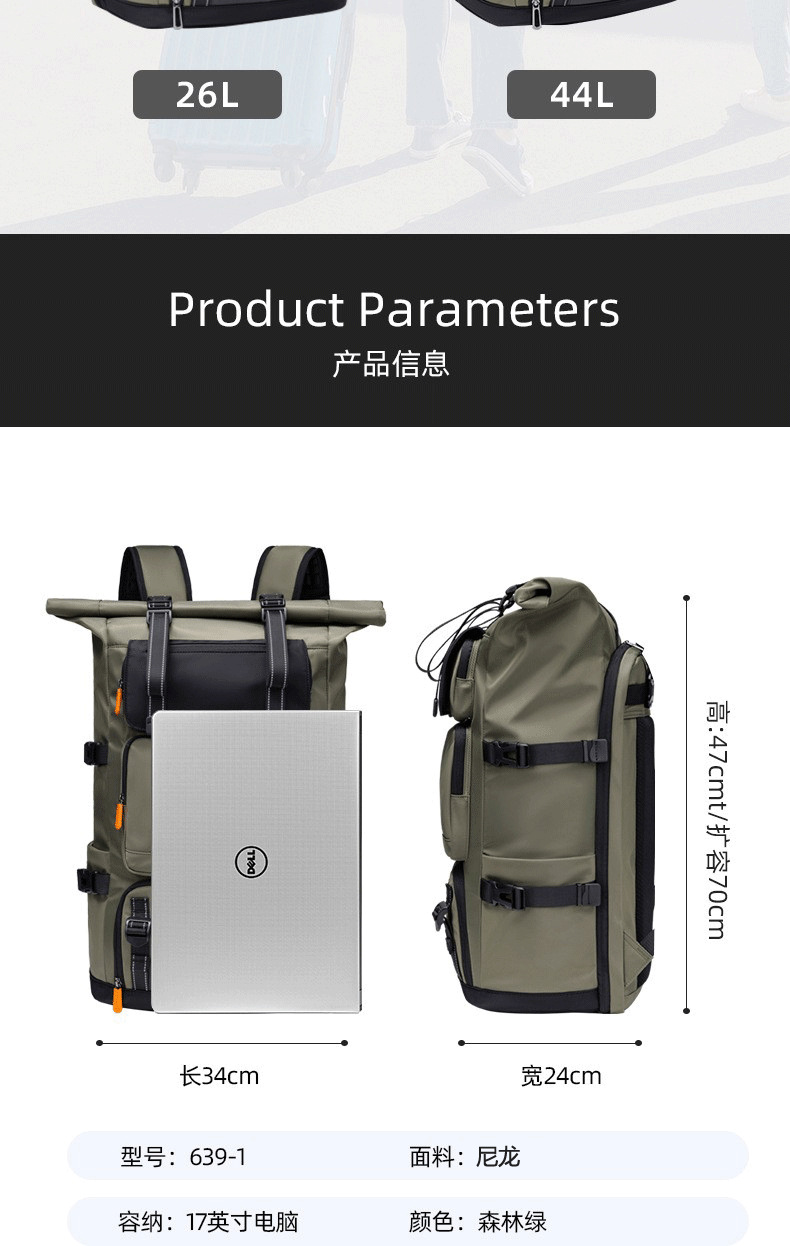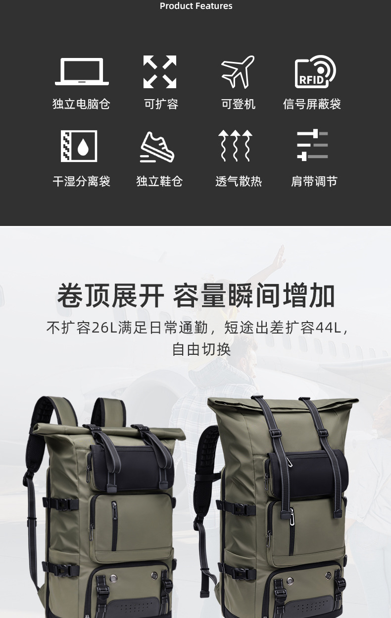 국경 간 배낭 남성용 초대형 용량 출장 여행 가방 17inch 컴퓨터 다기능 야외 캠핑 등산 배낭