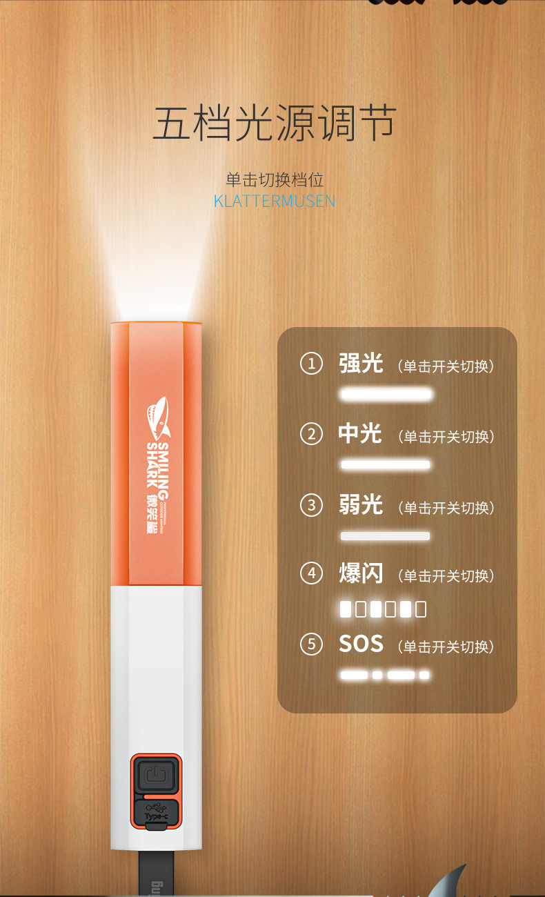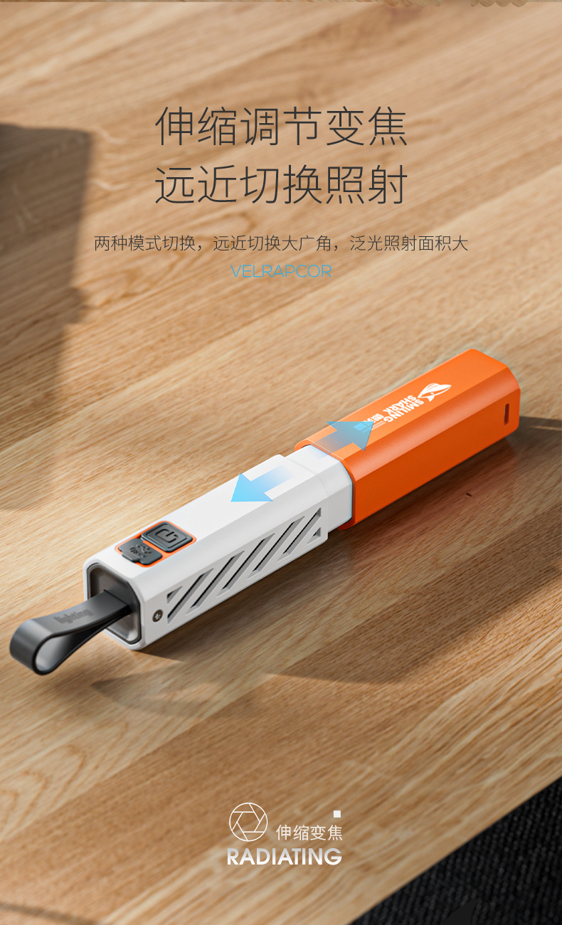 • SD-1020 미니 손전등-오렌지 [1500MAH] 줌/5단계 조정
