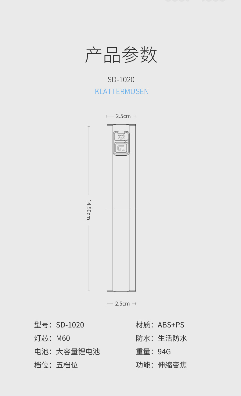• SD-1020 미니 손전등-블랙 [1500MAH] 줌/5단계 조정
