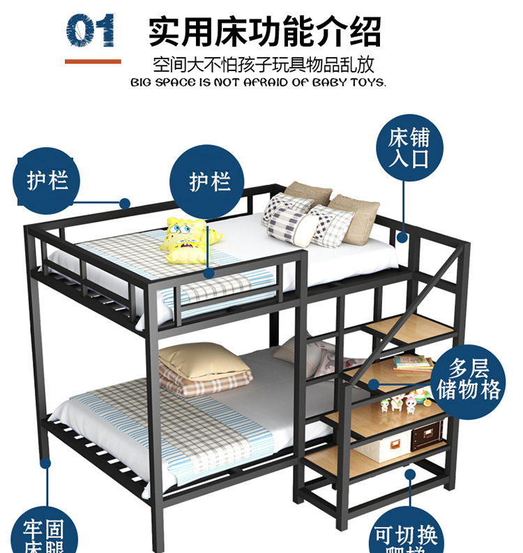 새로운 복층형 가정용 이층 철제 프레임 침대, 접합 이층 침대, 다인용 견고한 높은 침대, 공간 절약형 로프트 침대스토어 가기