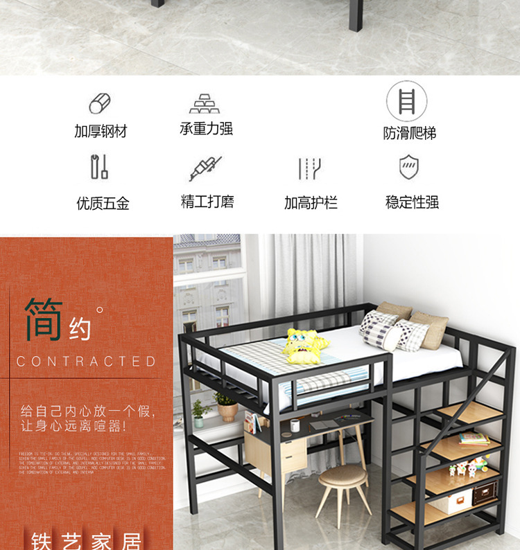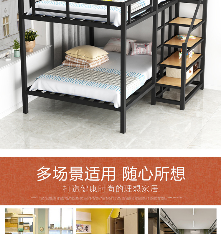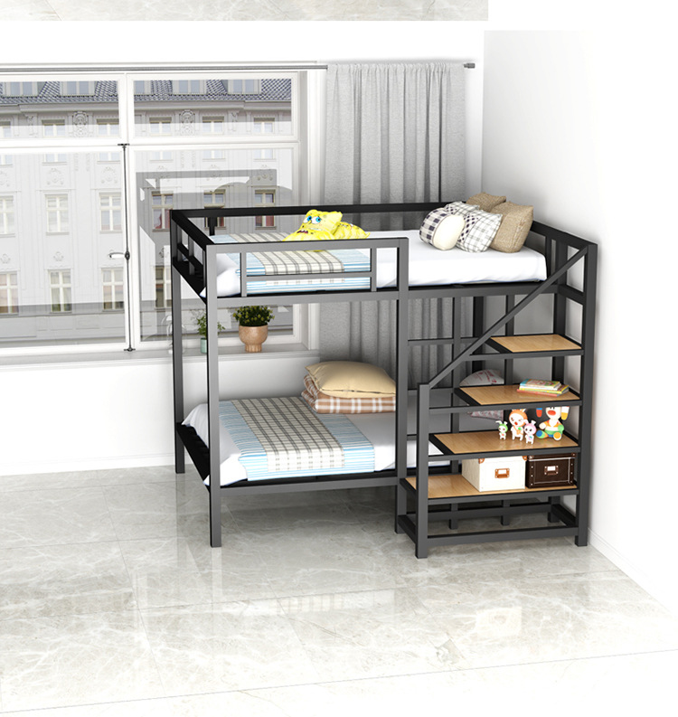 새로운 복층형 가정용 이층 철제 프레임 침대, 접합 이층 침대, 다인용 견고한 높은 침대, 공간 절약형 로프트 침대
