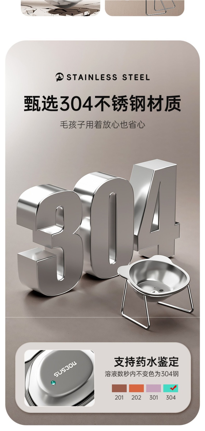 고양이 그릇 스테인레스 스틸 고양이 사료 그릇 고양이 밥 그릇 식품 그릇 식수 그릇 식품 그릇 애완견 그릇 경추를 보호하는 경사진 그릇