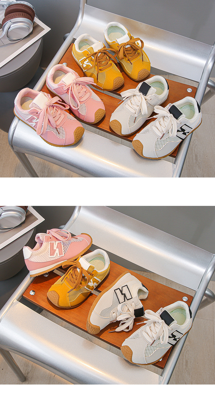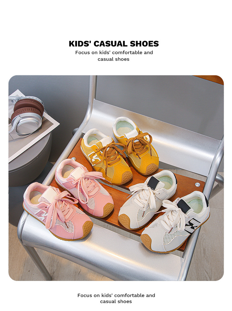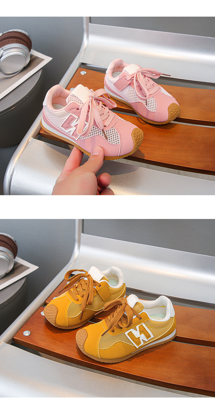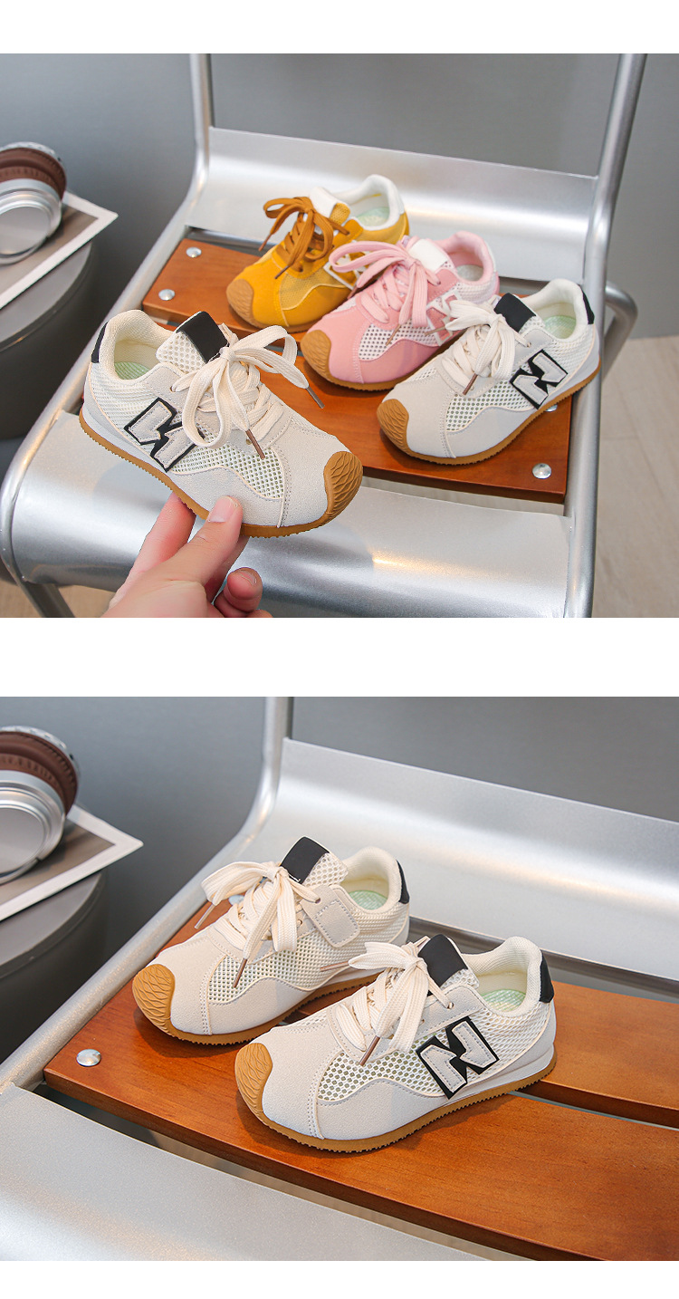 어린이 스포츠 신발 한국어 버전 마카롱 컬러 단일 메쉬 통기성 육군 훈련 신발 2025 여름 소년과 소녀를위한 새로운 캐주얼 신발스토어 가기