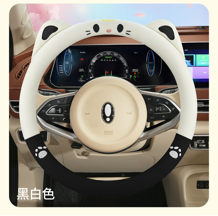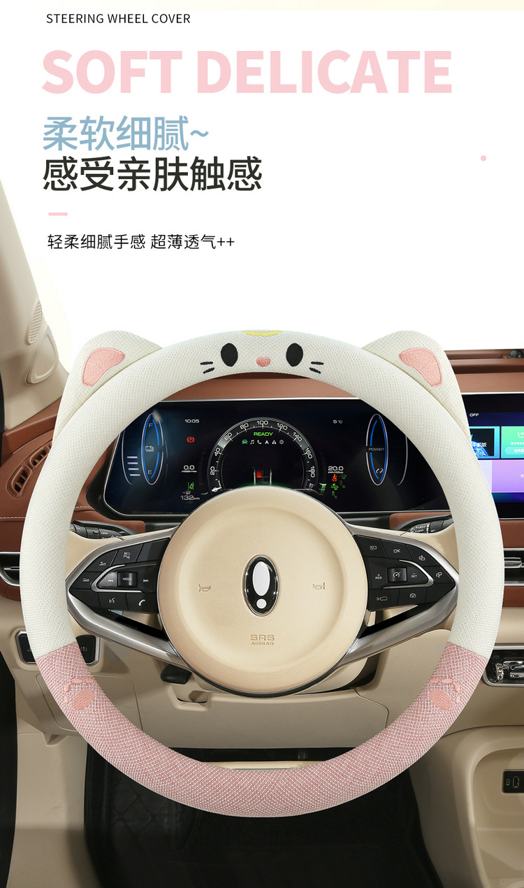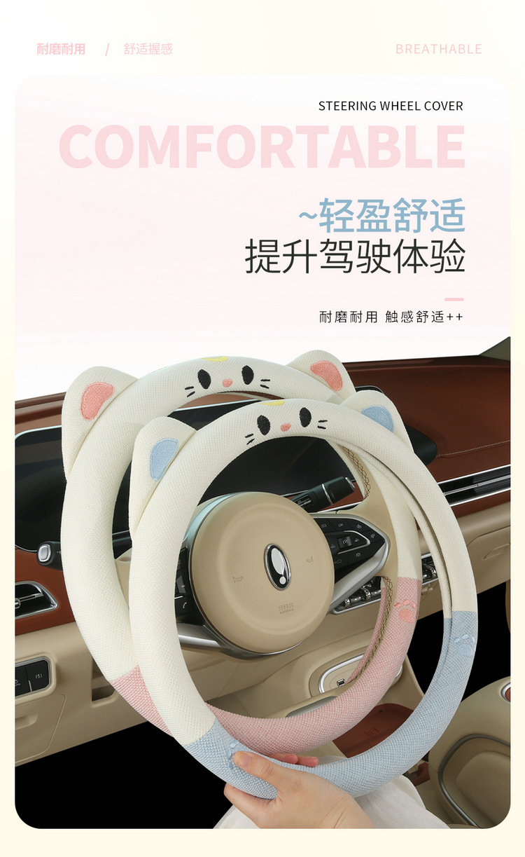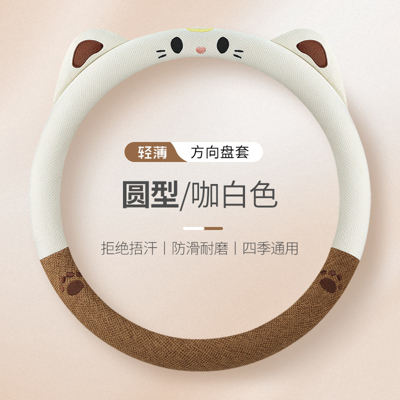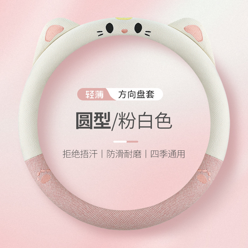 새로운 자동차 핸들 커버 여름 리넨 사계절 여신 여성 미끄럼 방지 귀여운 만화 자동차 핸들 커버