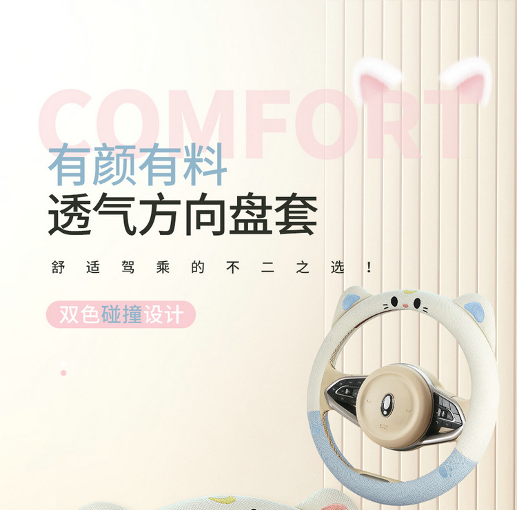 새로운 자동차 핸들 커버 여름 리넨 사계절 여신 여성 미끄럼 방지 귀여운 만화 자동차 핸들 커버스토어 가기