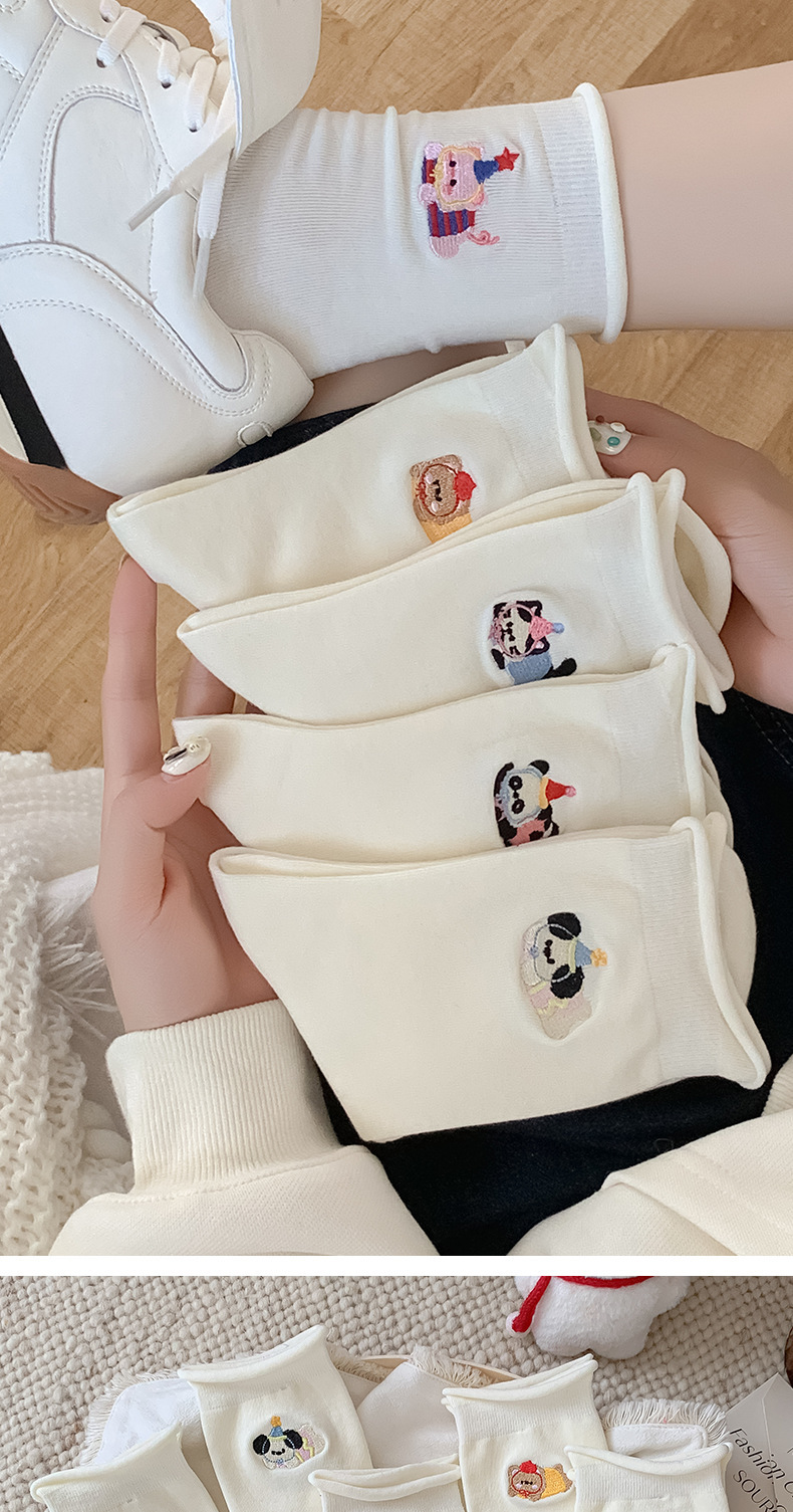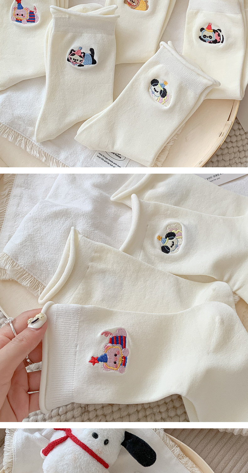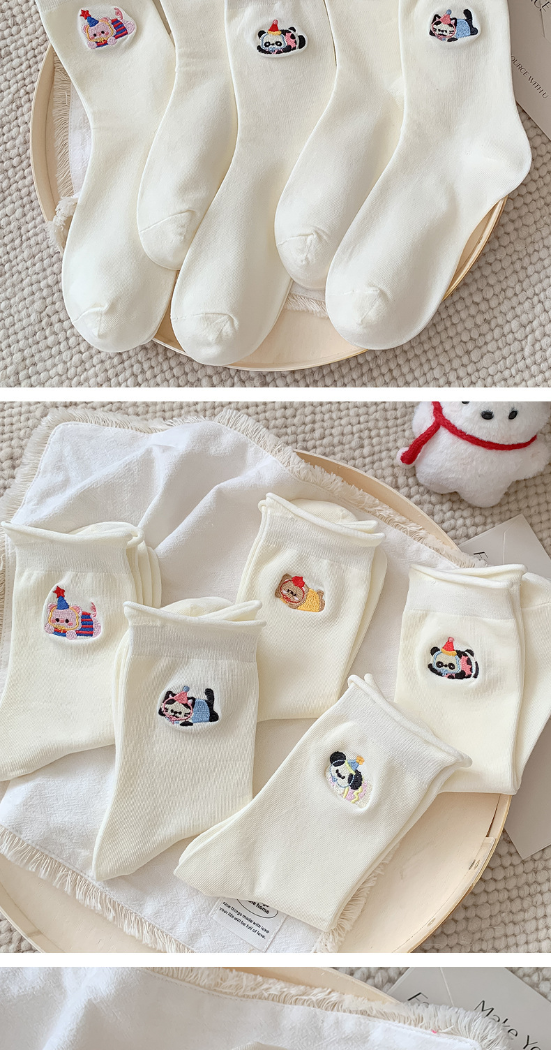 흰색 자수 양말, 작은 가죽 신발이 달린 여성용 종아리 중간 양말, 트렌디하고 통기성이 뛰어난 한국식 만화 귀여운 봄, 가을 양말, 면 양말스토어 가기