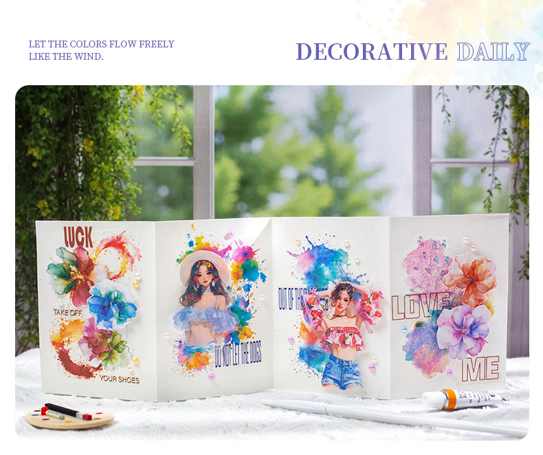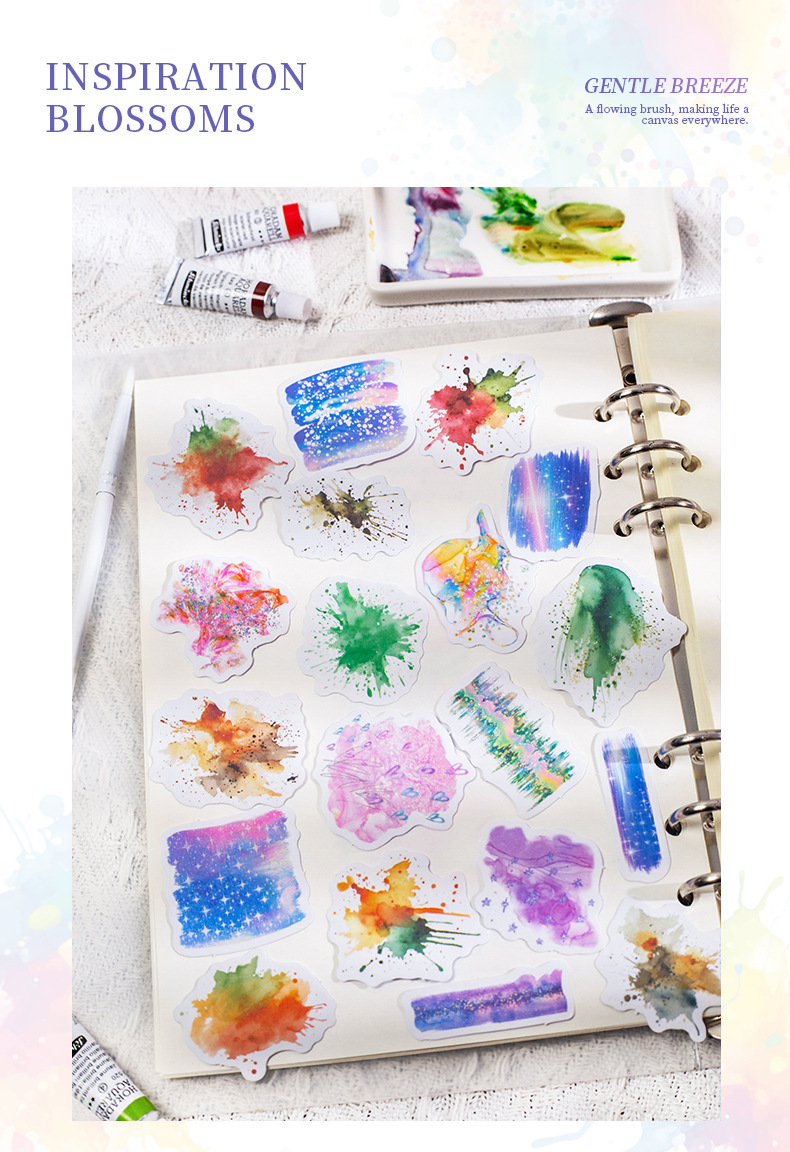 좋은 하루 수채화 물감 상자 시리즈 수채화 얼룩진 대형 스티커 핸드북 장식 콜라주 재료스토어 가기