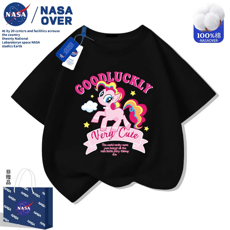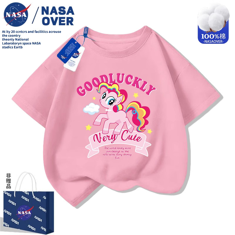 NASA 마이 리틀 포니 핑키 걸스 퓨어 코튼 반팔 티셔츠 2025 뉴 여름 어린이 귀여운 다용도 탑스토어 가기