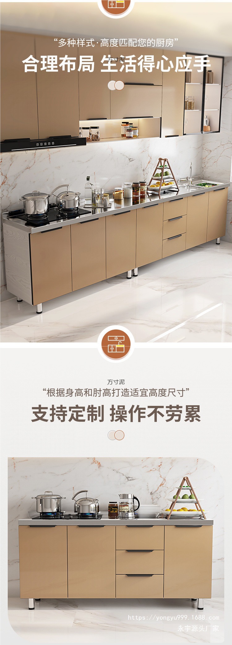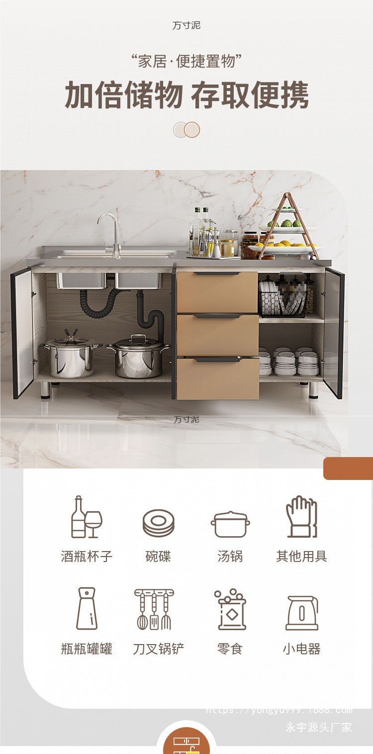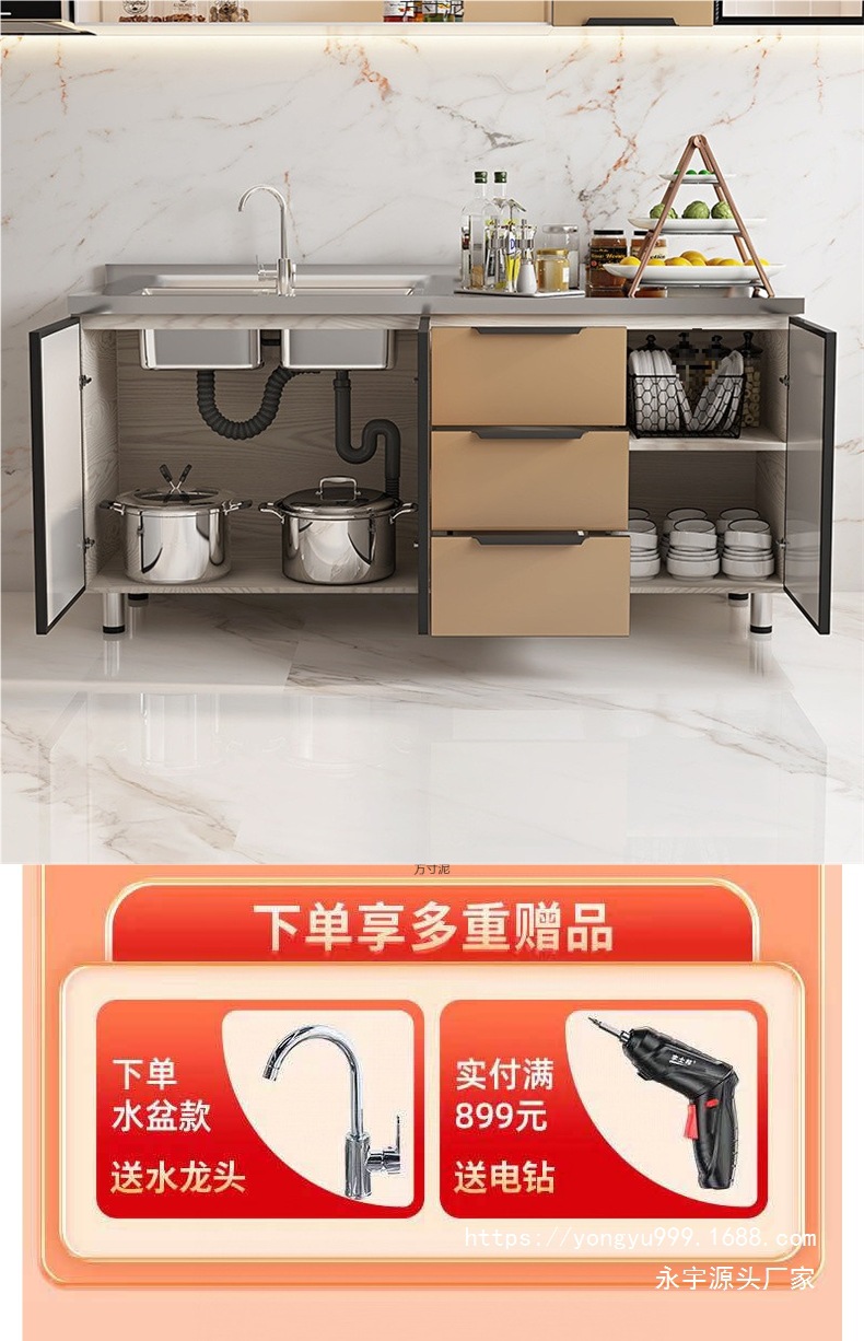스테인레스 스틸 캐비닛, 스토브 캐비닛, 일체형 간단하고 경제적인 임대 보관 캐비닛, 찬장, 물 캐비닛, 가정용 주방 캐비닛 공장스토어 가기