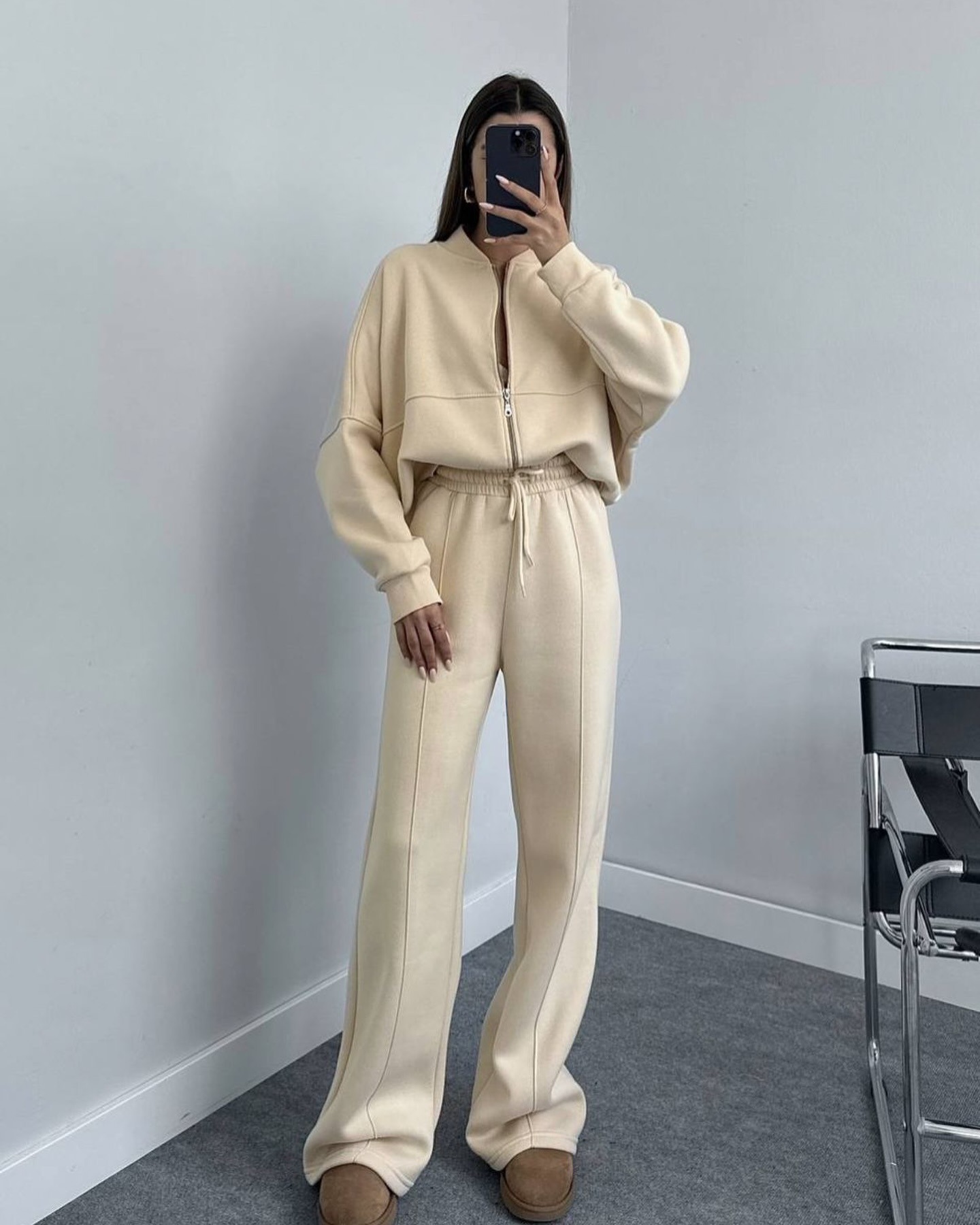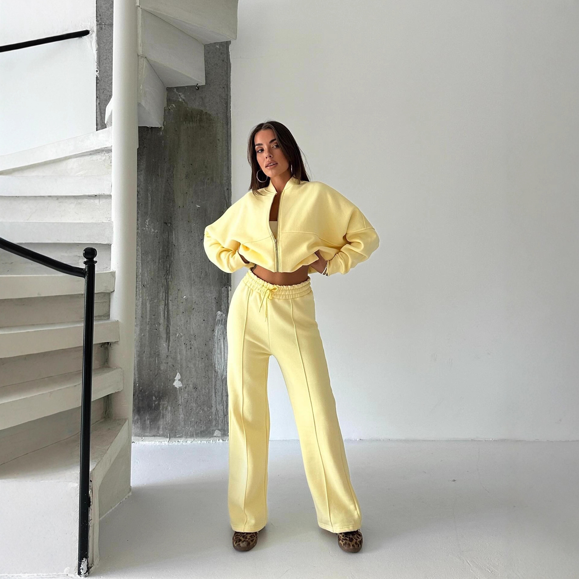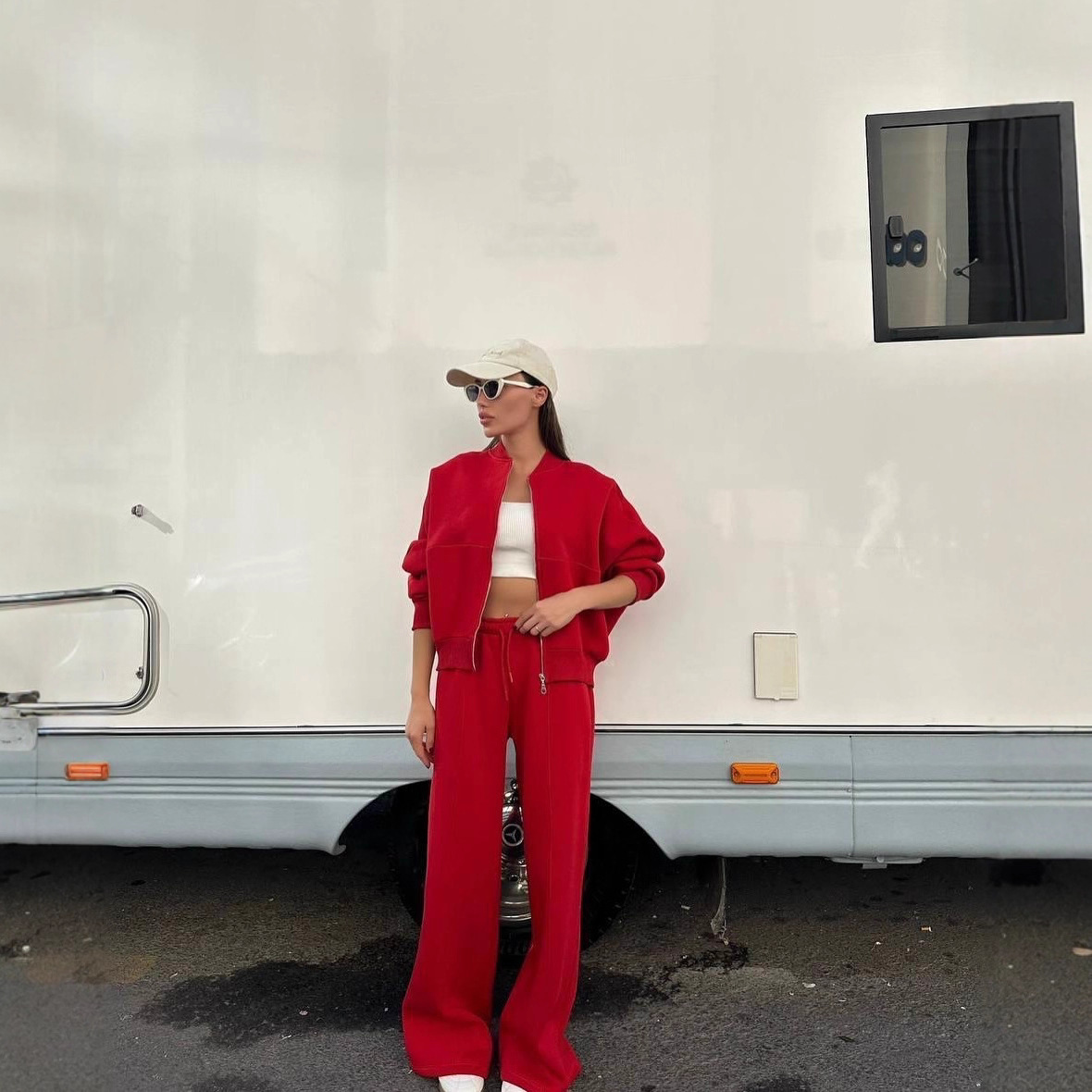 크로스보더 유럽풍 캐주얼 세트 가을 겨울 가디건 스포츠 여성 패션 지퍼 긴팔 재킷 바지 투피스 세트