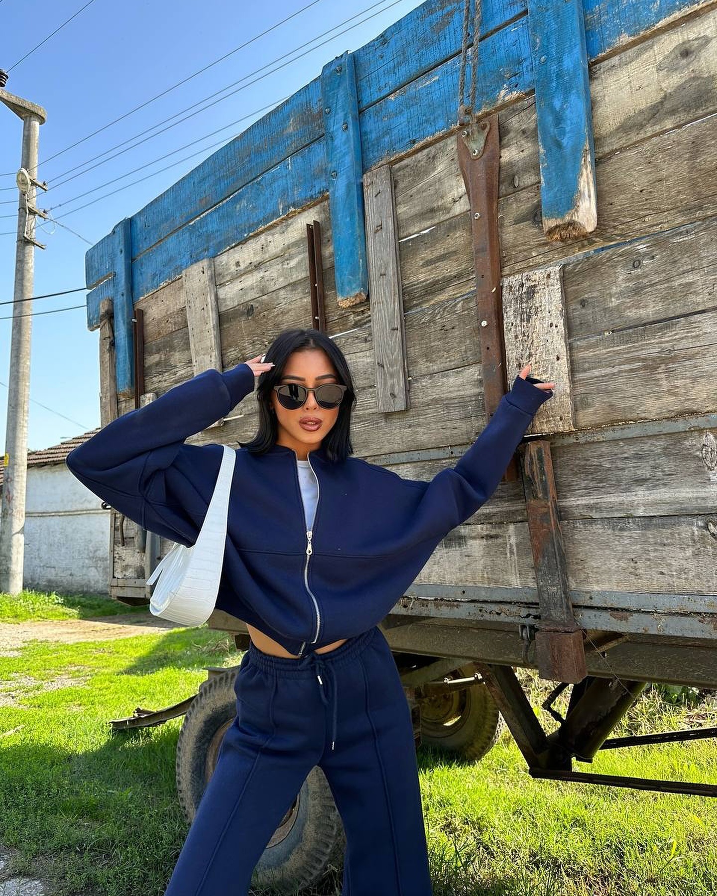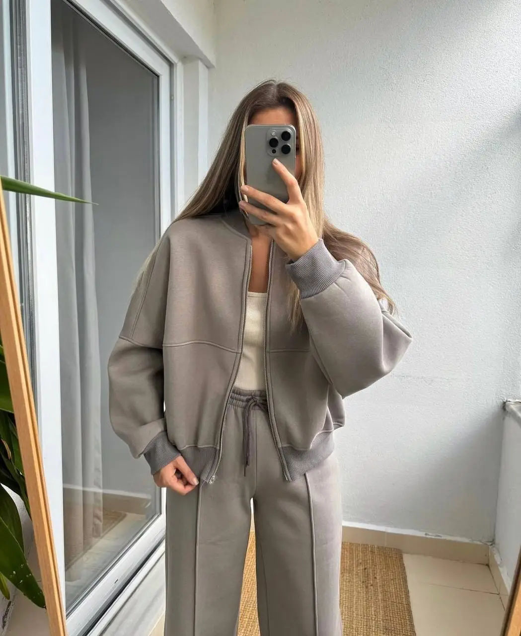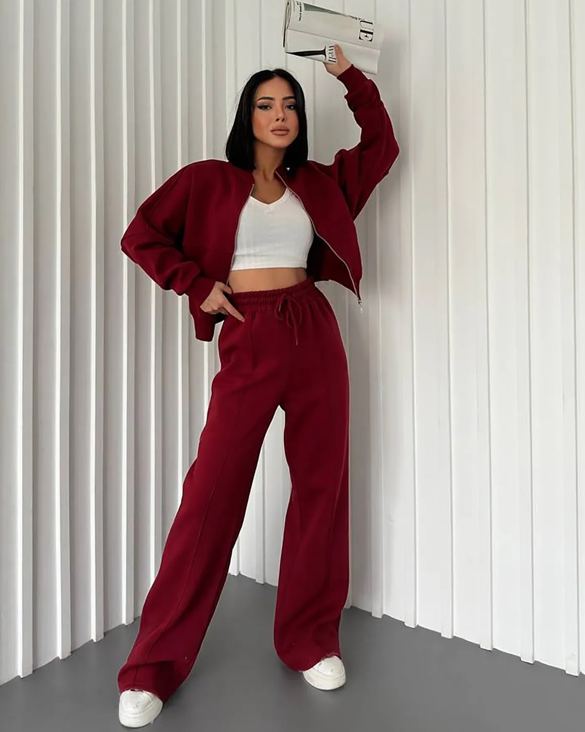 크로스보더 유럽풍 캐주얼 세트 가을 겨울 가디건 스포츠 여성 패션 지퍼 긴팔 재킷 바지 투피스 세트
