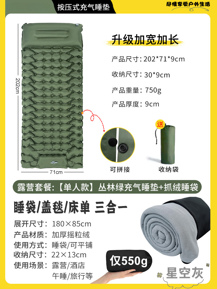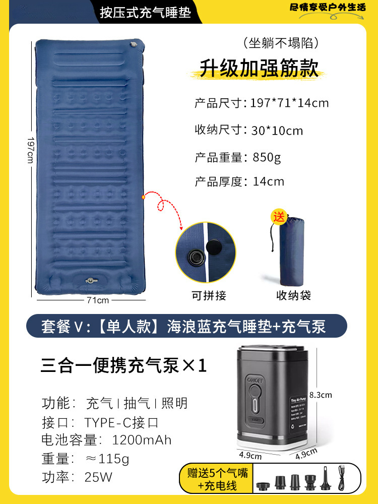 경량 풍선 수면 매트, 풍선 매트리스, 야외 캠핑 방습 매트, 휴대용 캠핑 등산 매트, 점심 매트