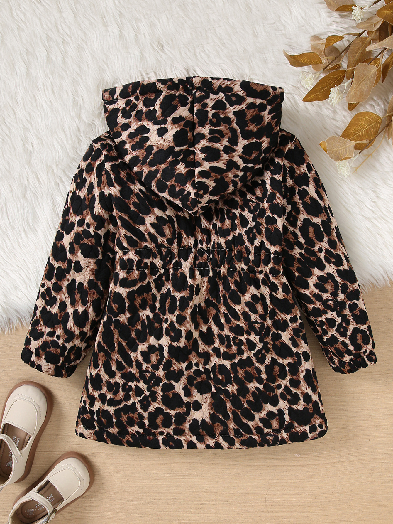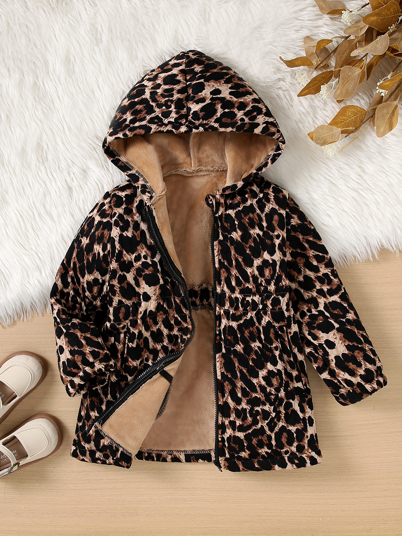 가을, 겨울 소녀 패션 레오파드 프린트 후드 자켓 지퍼 셔츠 참신 중간 길이 복합 코트