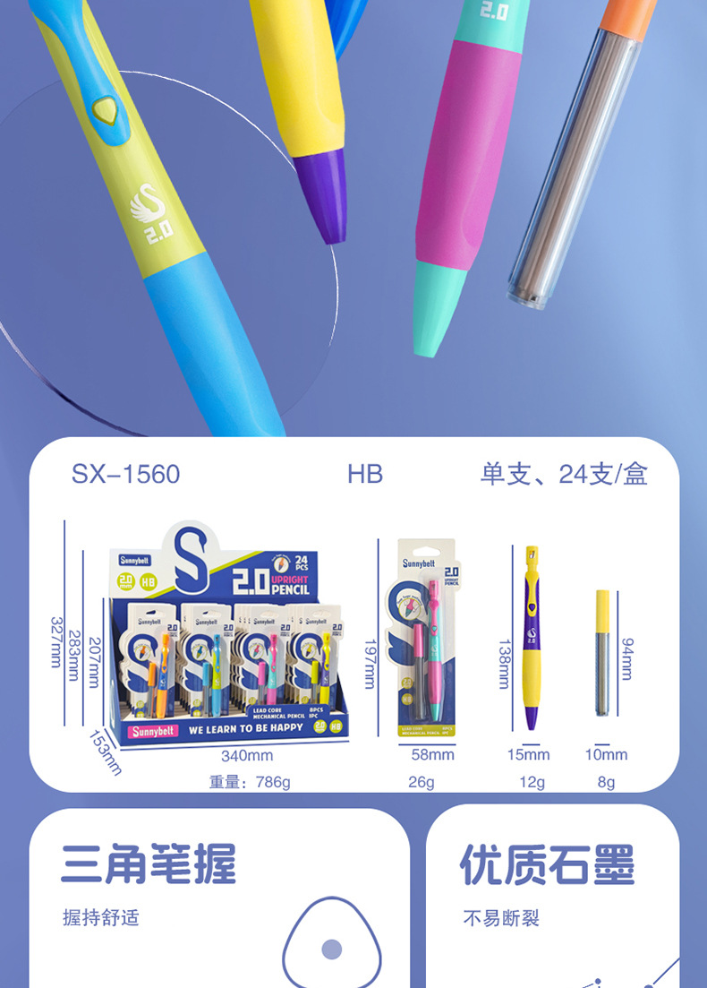 독일 Shiboer 2.0 초등학생을 위한 두꺼운 심 자동 연필, 고급스러운 유치원 자동 펜, 편안한 그립