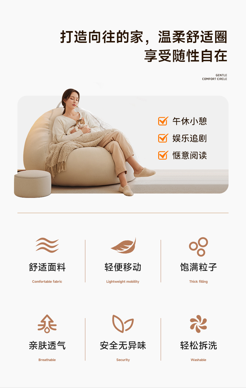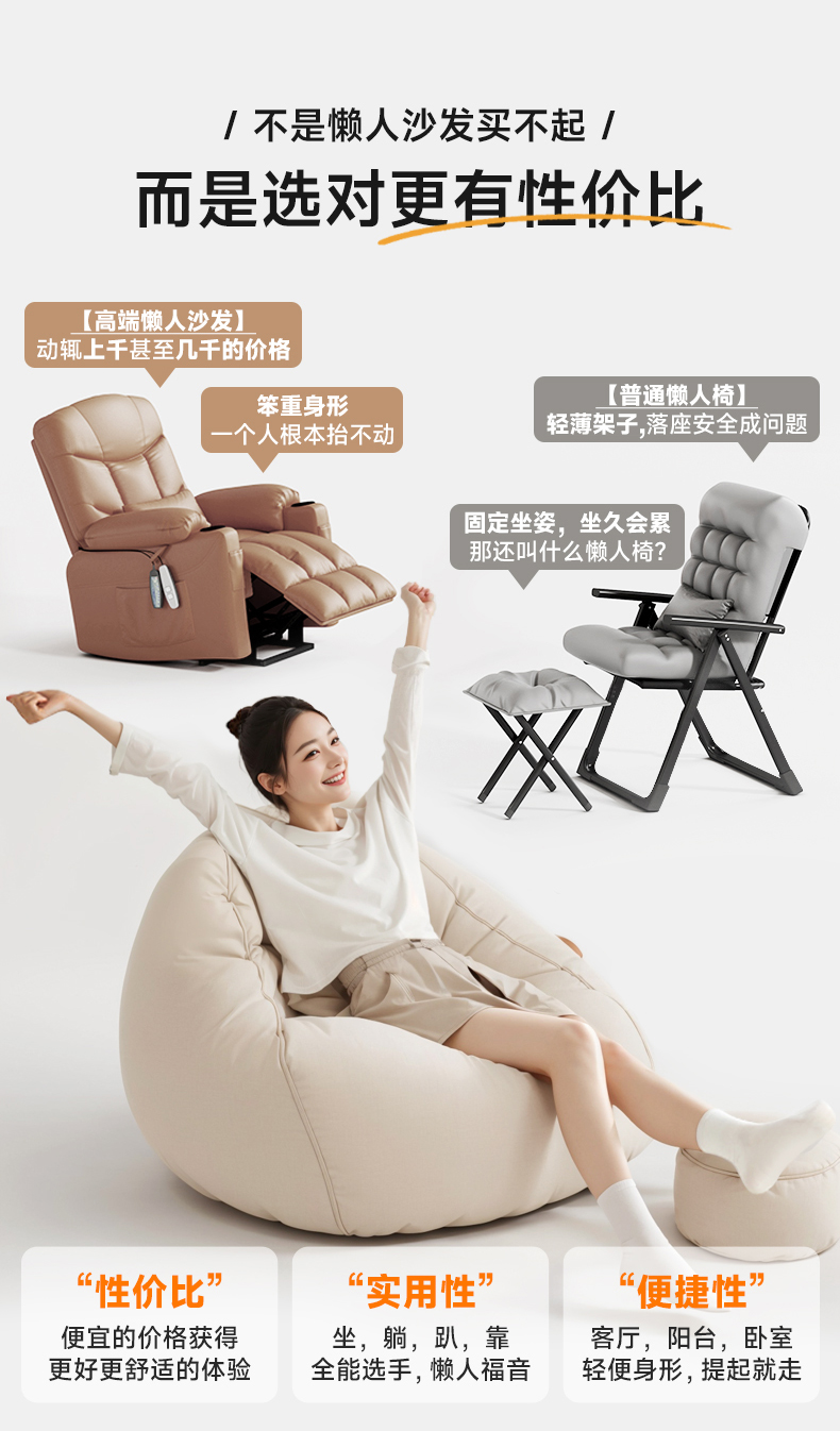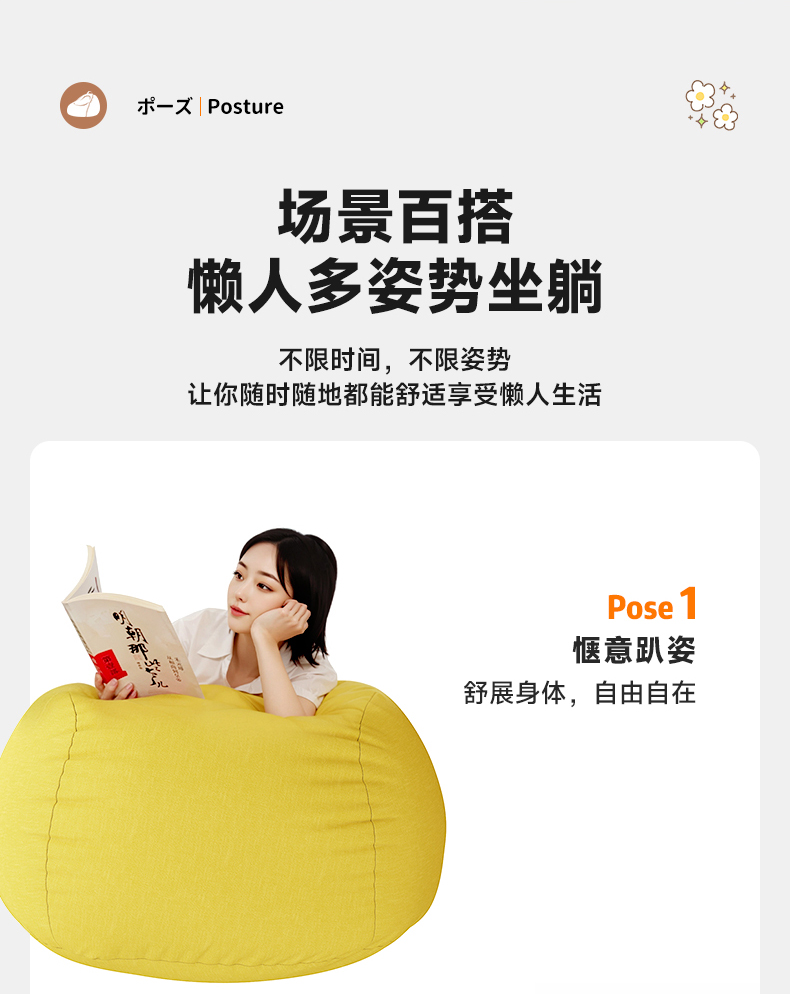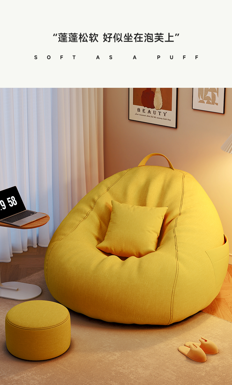 리클라이닝 및 수면이 가능한 게으른 소파, 싱글 게으른 의자, 인간 개집, 다다미 침실 소형 소파, 콩가루 가방 안락의자스토어 가기