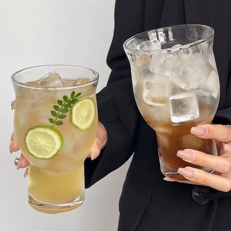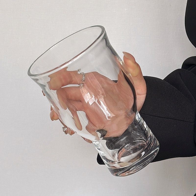 Ins 스타일 인터넷 연예인 입이 넓은 유리 컵 고급스러운 대용량 물 컵 커피 밀크티 주스 차가운 음료 컵 여름