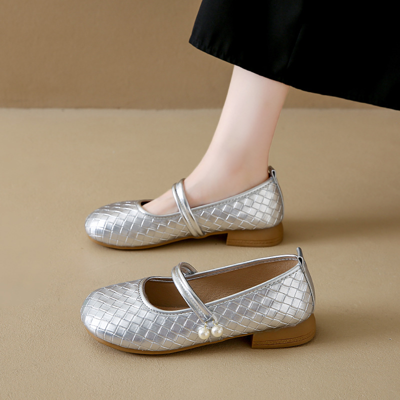 여성을 위한 아름다운 실버 스커트 펌프스 2025 여름 소프트 솔 다용도 임산부 벨크로 메리 제인 샌들