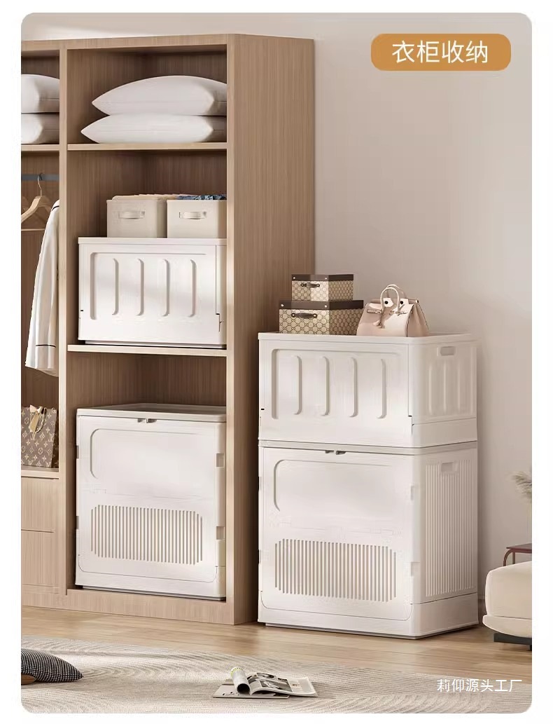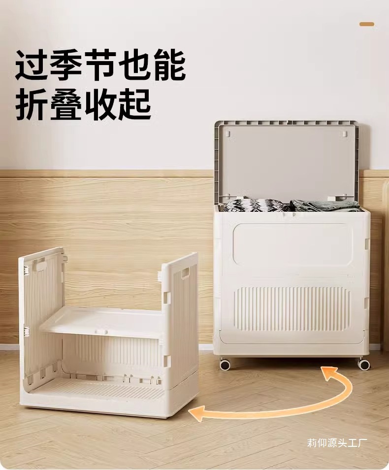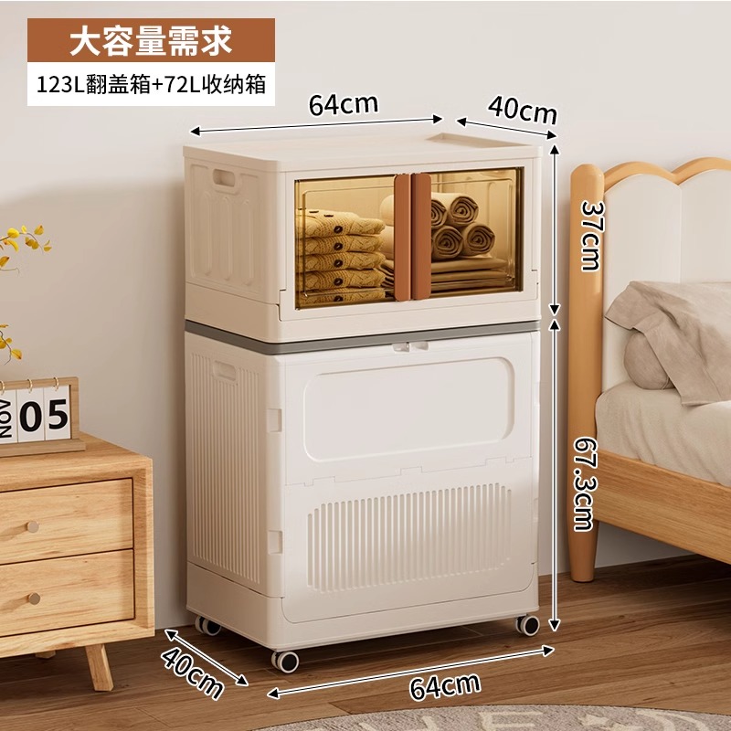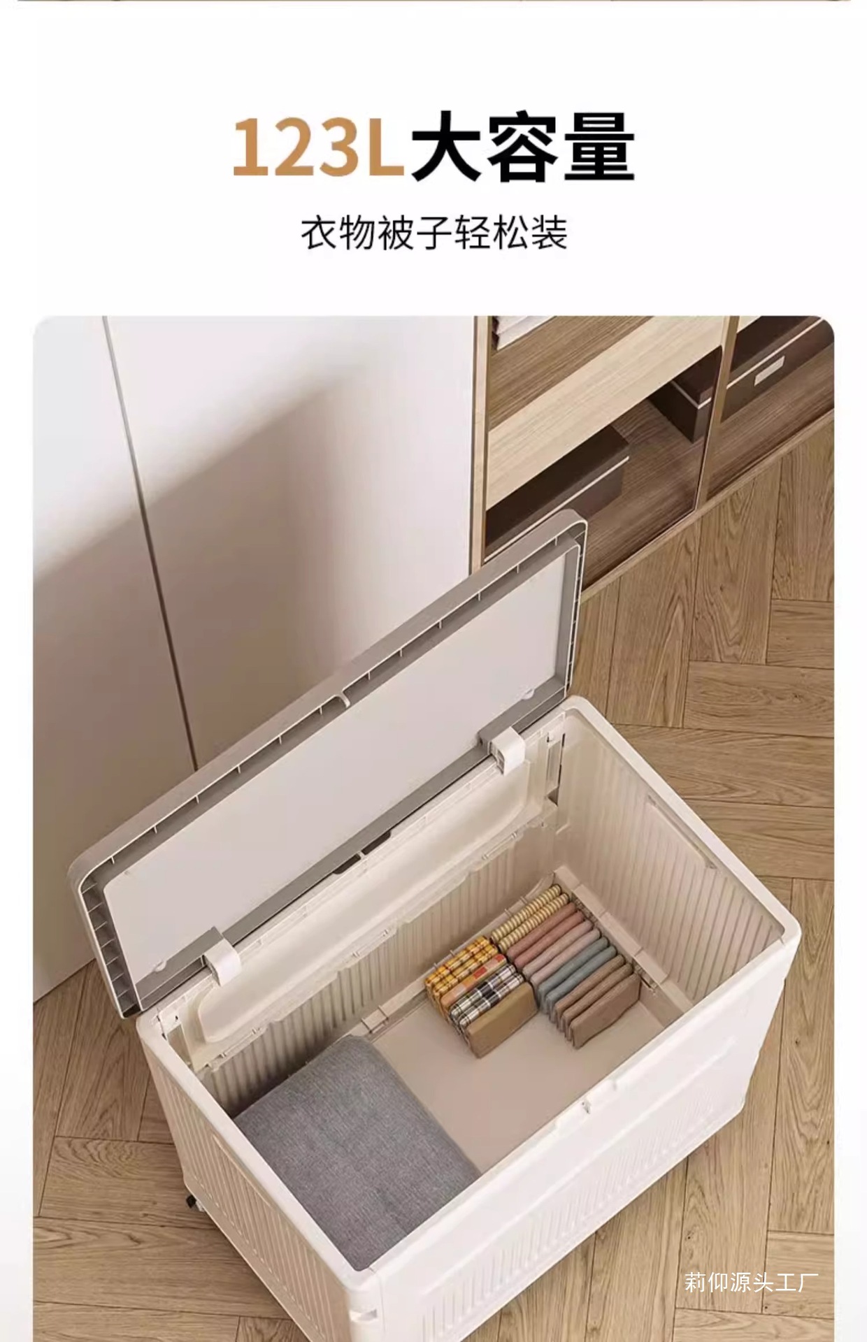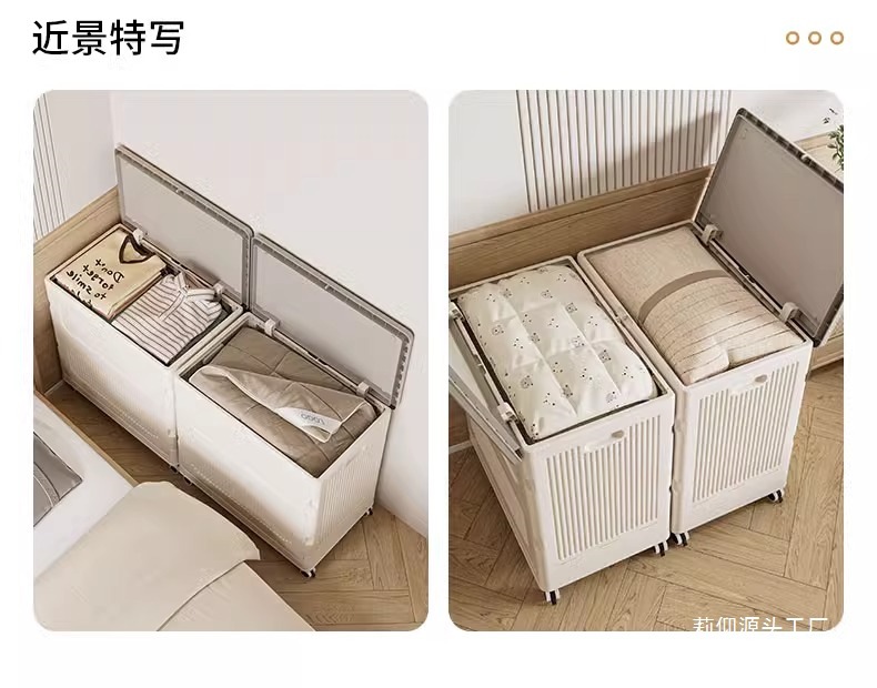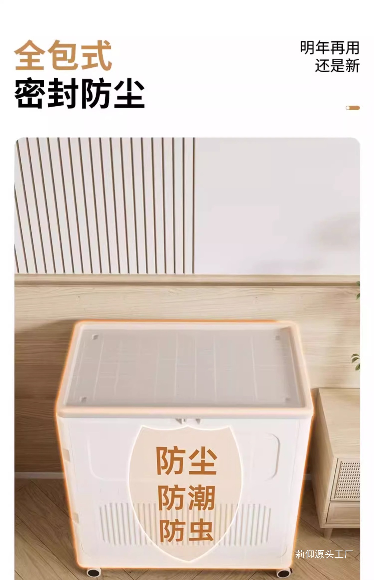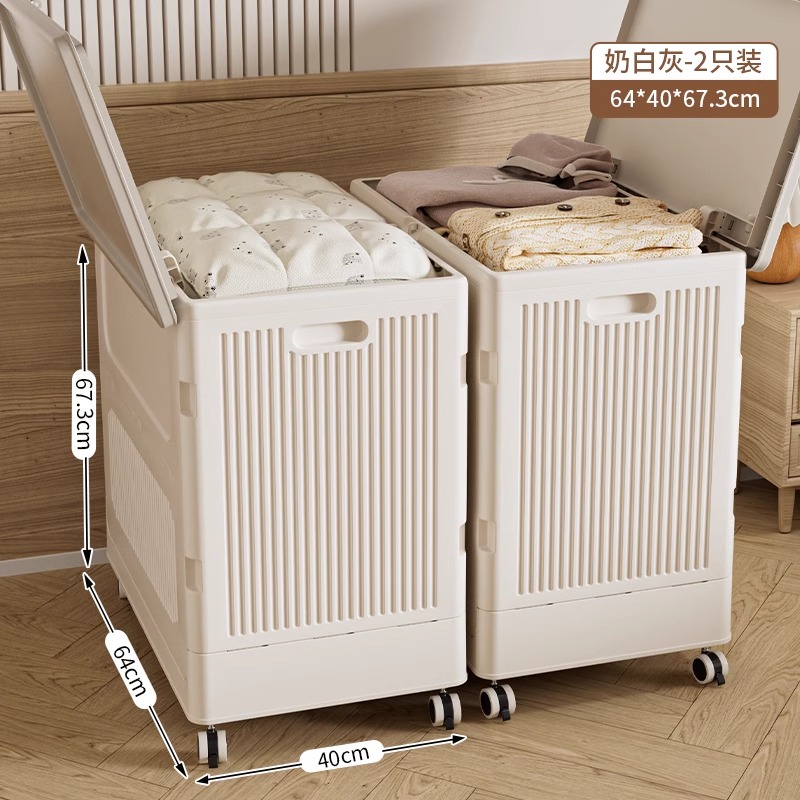 옷 보관함 대용량 가정용 플립 커버(풀리 포함) 접이식 바구니 의류 정리함 이불 보관함 Liyang
