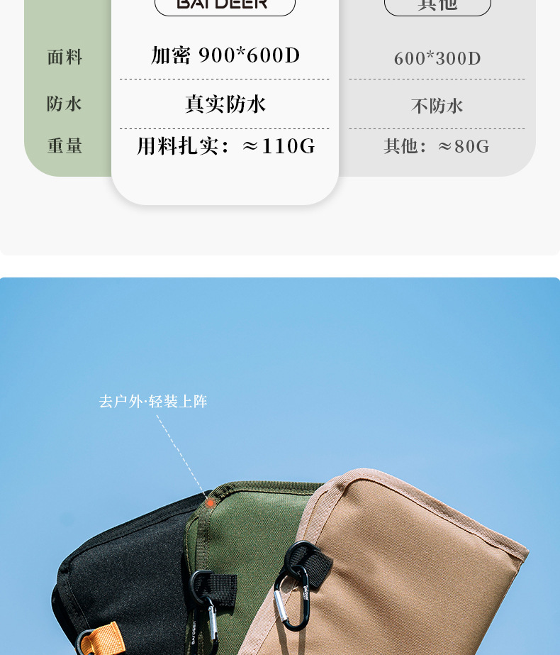 产品特点:600D的加密牛津布,正反面都防水,比市面上的要更有质感,更防水。