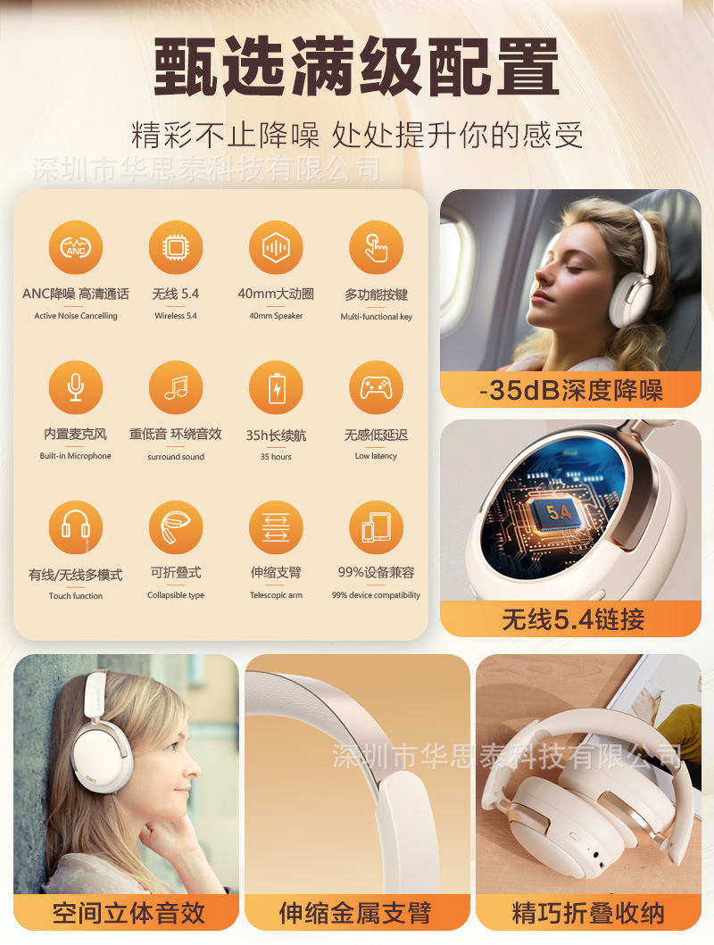 새로운 ANC 이중 피드백 소음 감소 헤드셋 Bluetooth 5.3 초고 수명 접이식 게임용 저 지연 헤드셋스토어 가기