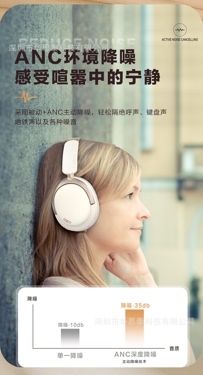 새로운 ANC 이중 피드백 소음 감소 헤드셋 Bluetooth 5.3 초고 수명 접이식 게임용 저 지연 헤드셋