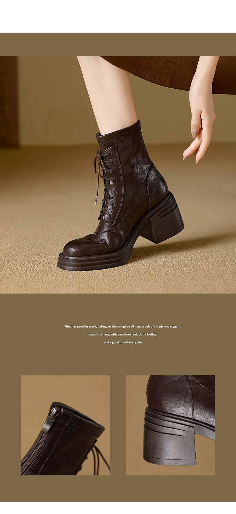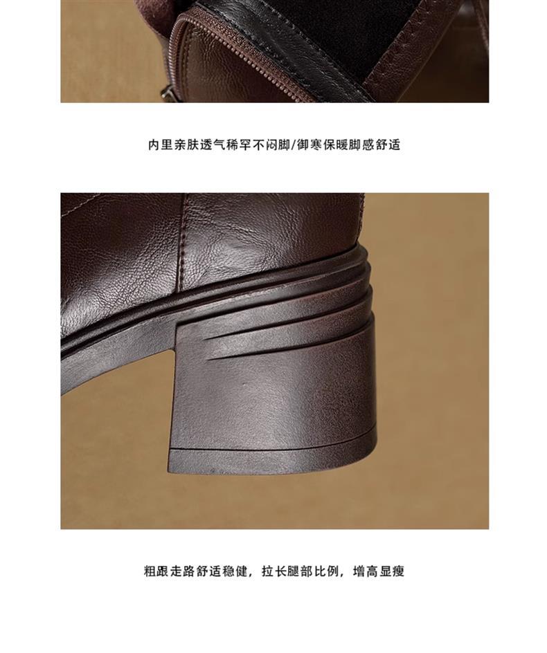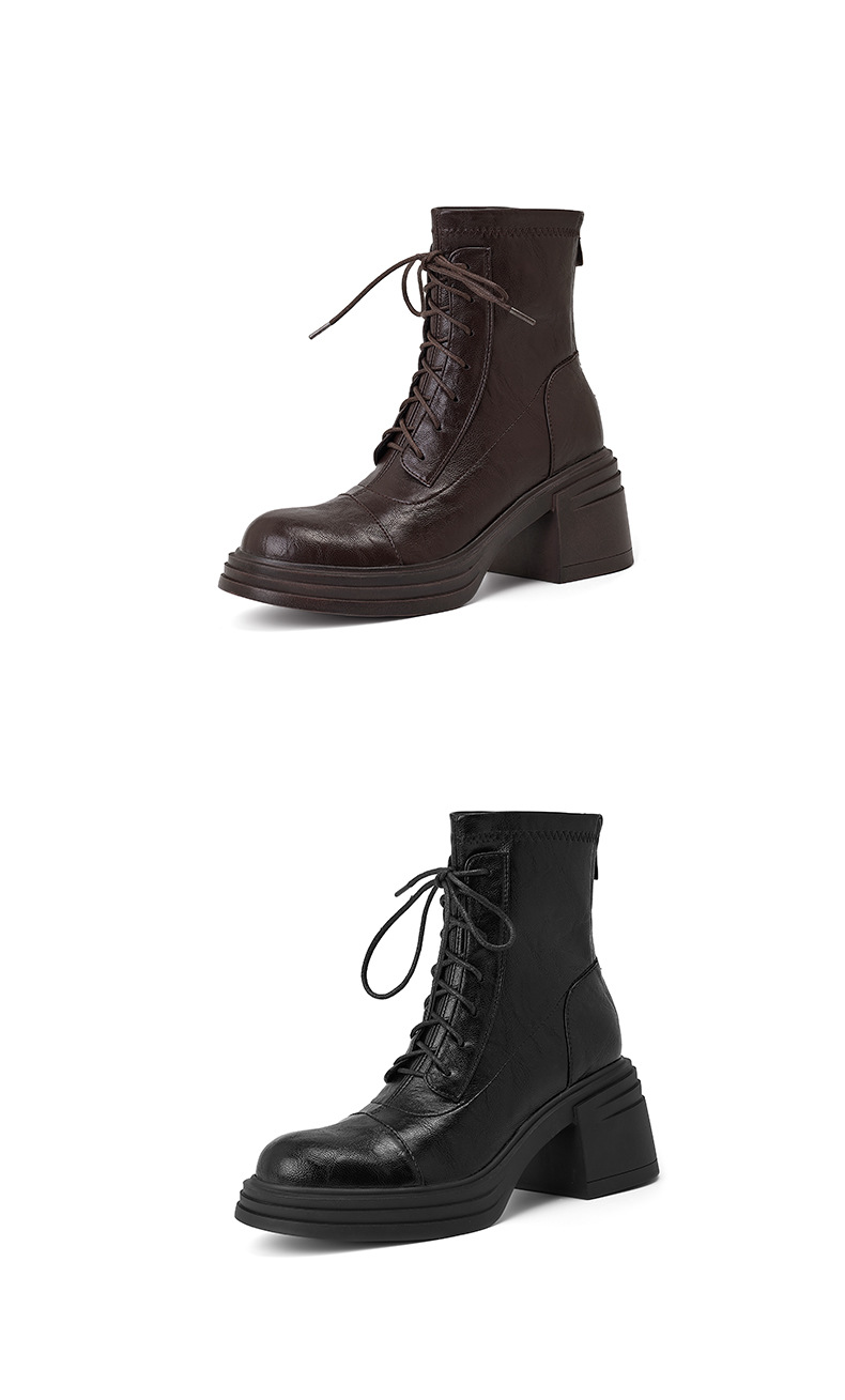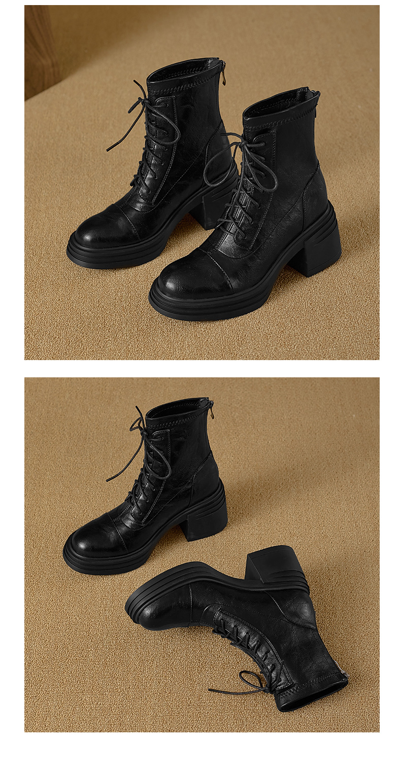 재고 있음, 무소음, 낮은 굽 | 두꺼운 굽 7cm 스트랩 슬림 부츠, 뒷면 지퍼, 두꺼운 밑창, 신축성 있는 부츠, 스플라이싱 숏부츠, 여성용스토어 가기