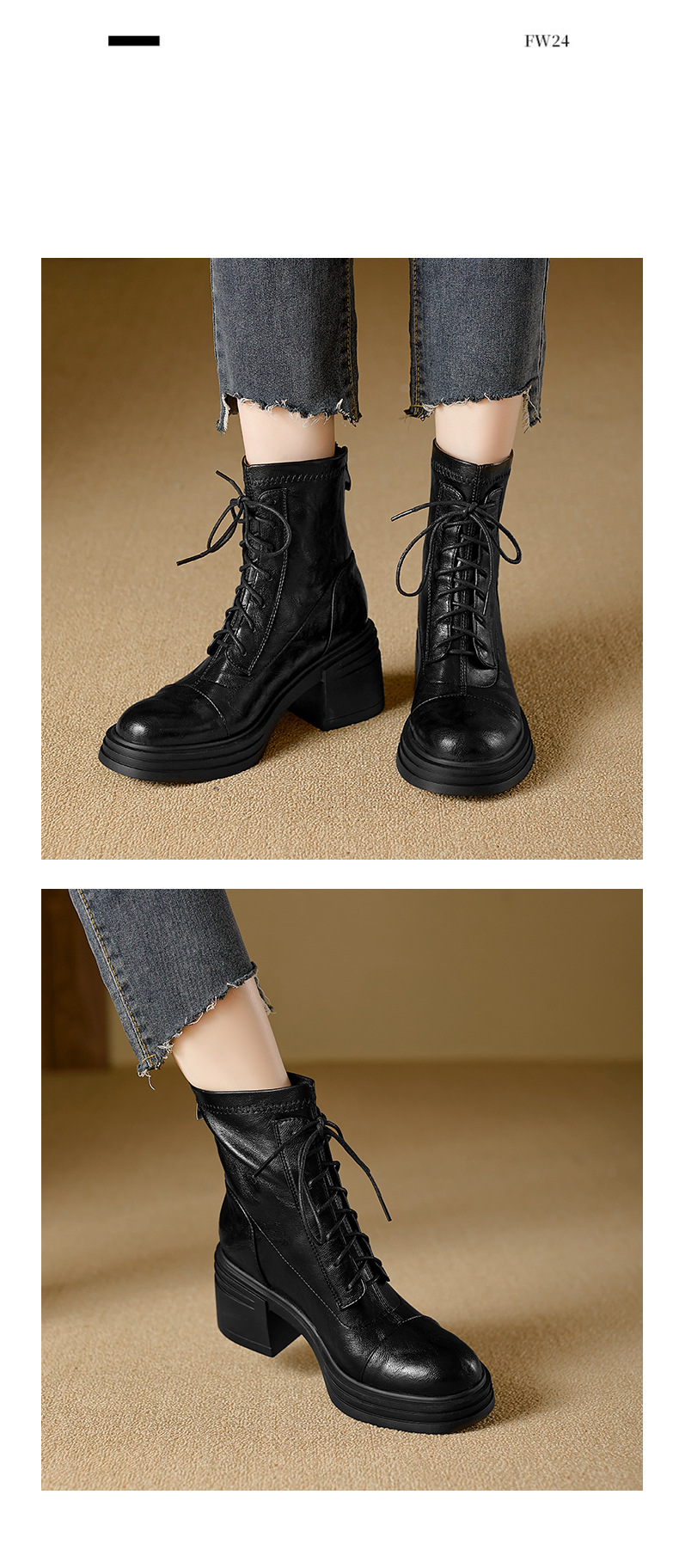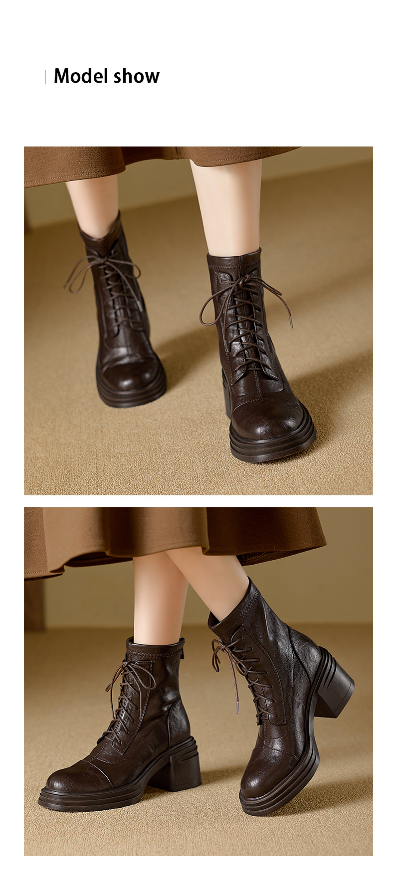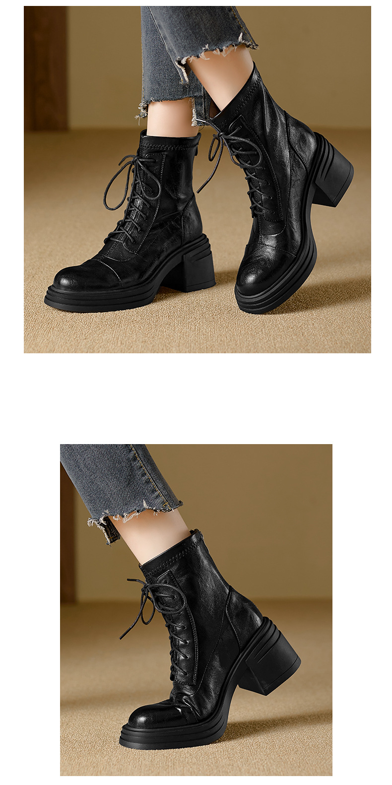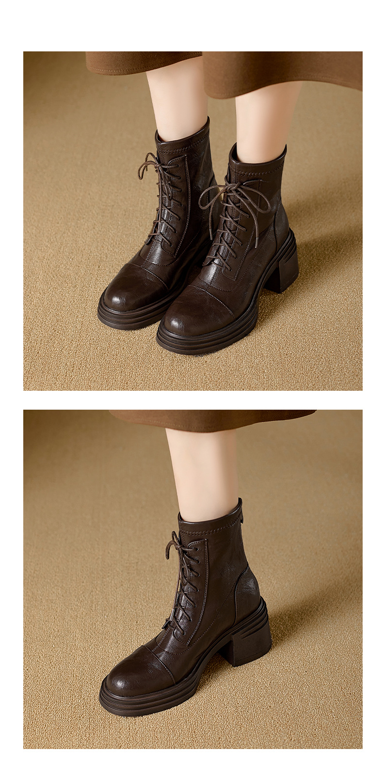 재고 있음, 무소음, 낮은 굽 | 두꺼운 굽 7cm 스트랩 슬림 부츠, 뒷면 지퍼, 두꺼운 밑창, 신축성 있는 부츠, 스플라이싱 숏부츠, 여성용스토어 가기