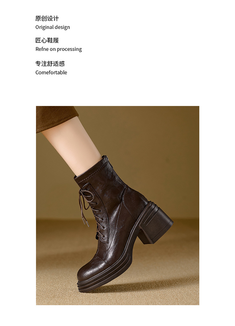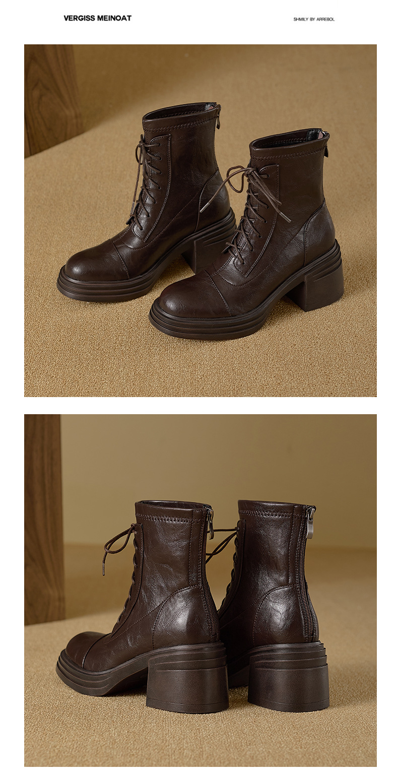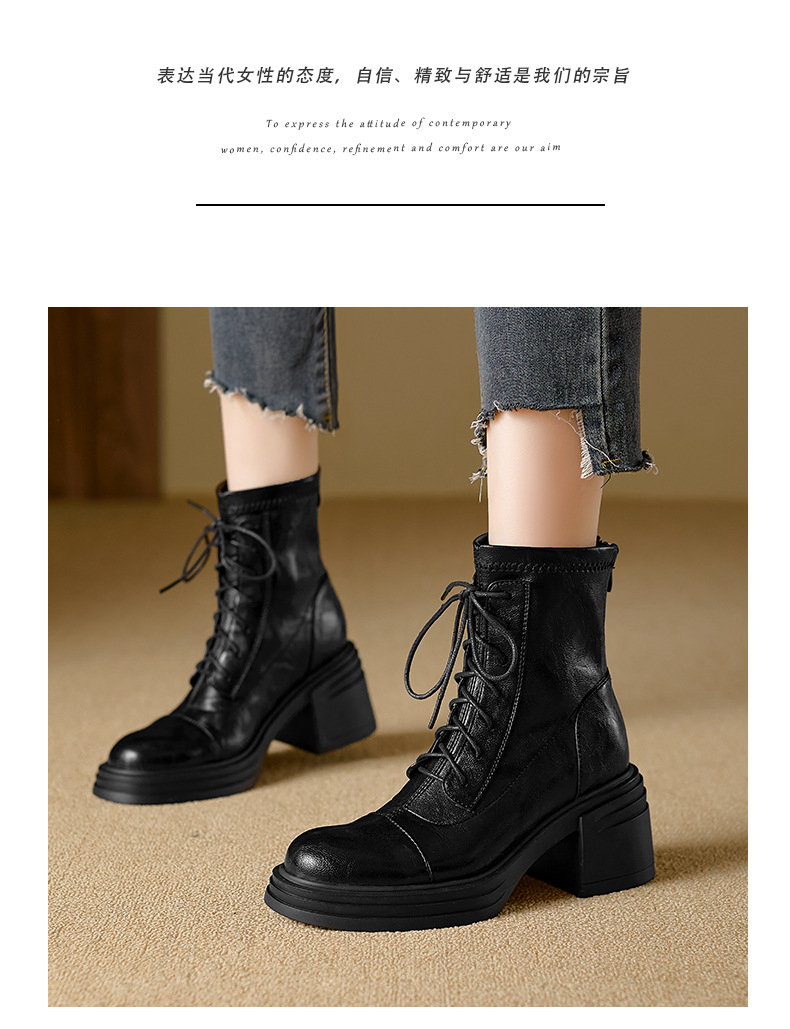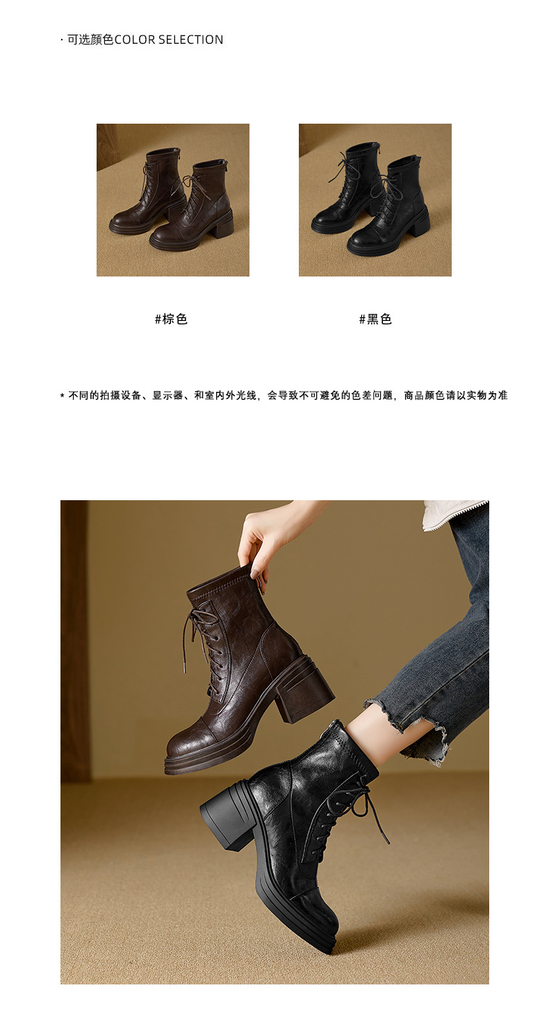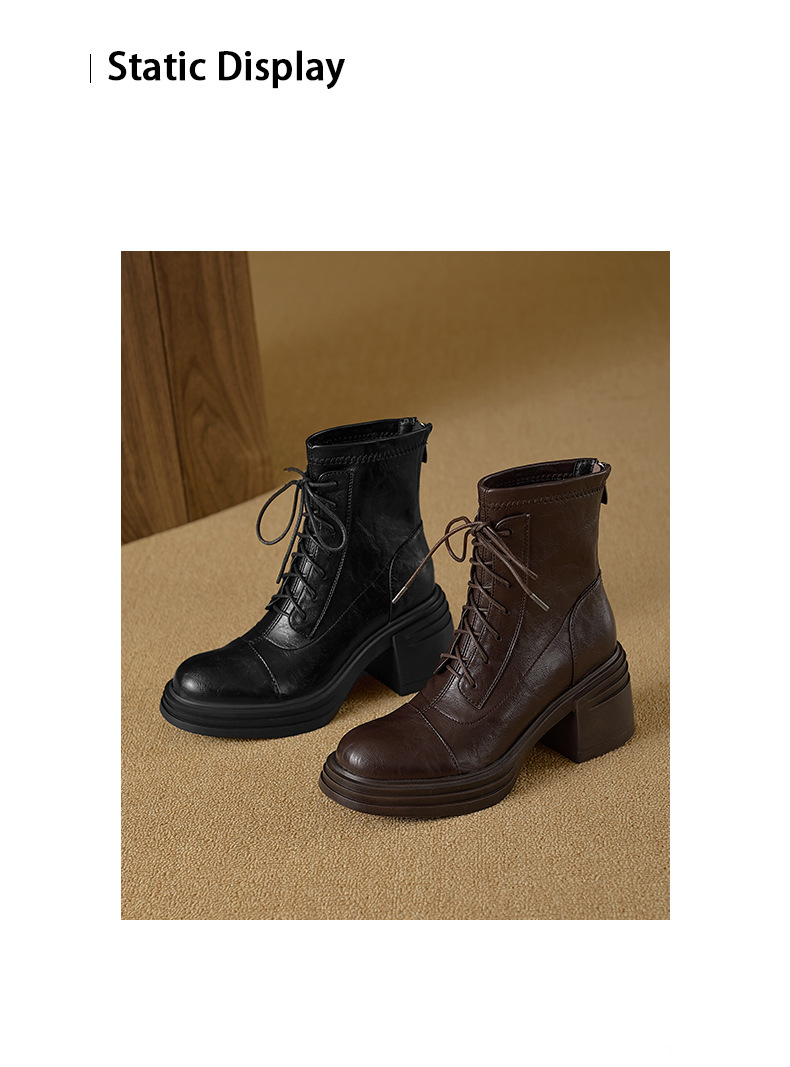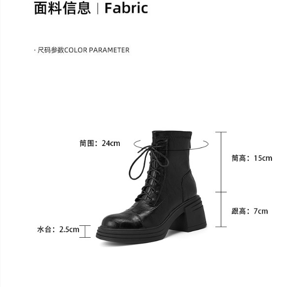 재고 있음, 무소음, 낮은 굽 | 두꺼운 굽 7cm 스트랩 슬림 부츠, 뒷면 지퍼, 두꺼운 밑창, 신축성 있는 부츠, 스플라이싱 숏부츠, 여성용