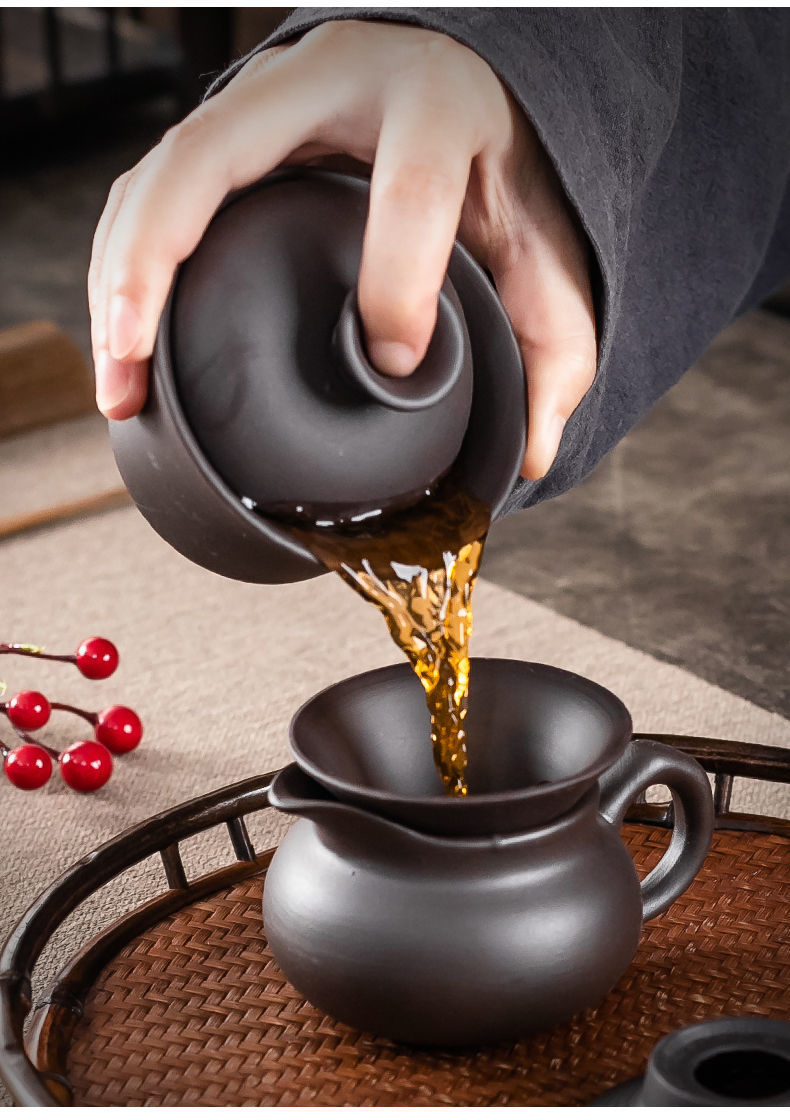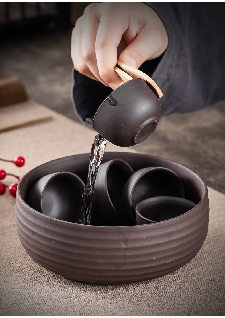 원광석 보라색 모래 쿵푸 차 세트, 가정용 찻주전자, 찻잔, 간단한 사무실 접대 세트, 시시 주전자