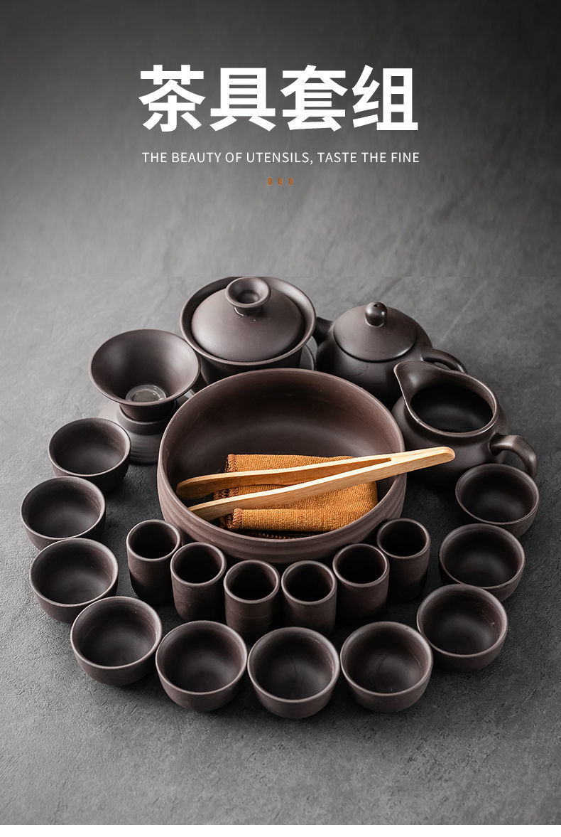 • 22개 머리 10컵 검은색 보라색 점토 서시 찻주전자 덮은 그릇 전체 시리즈