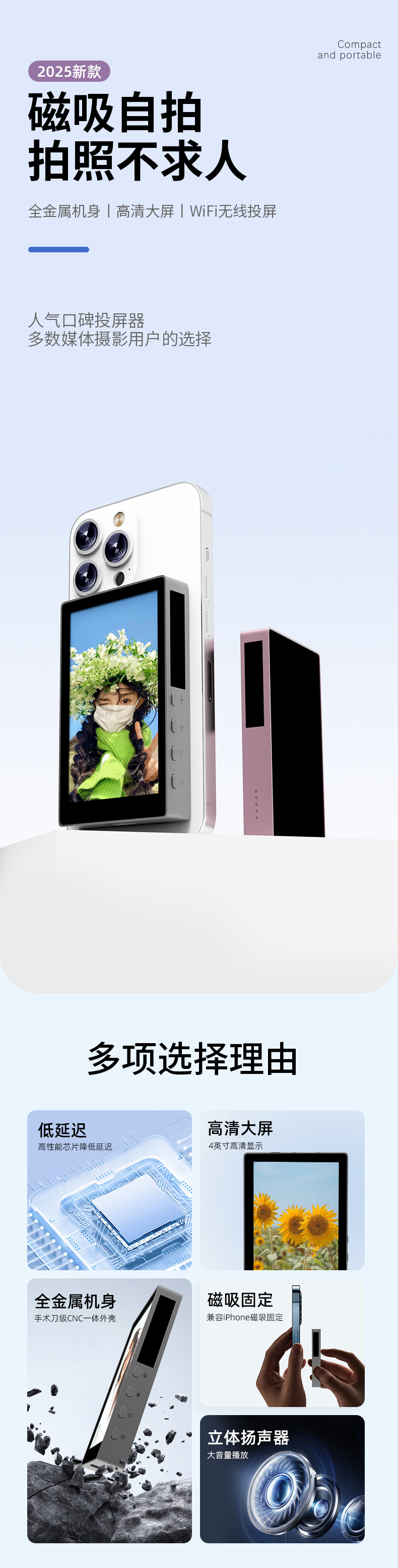 국경 간 4.0inch 휴대 전화 고화질 셀카 스크린 프로젝터 휴대 전화 후면 카메라 자기 디스플레이와 무선 연결스토어 가기