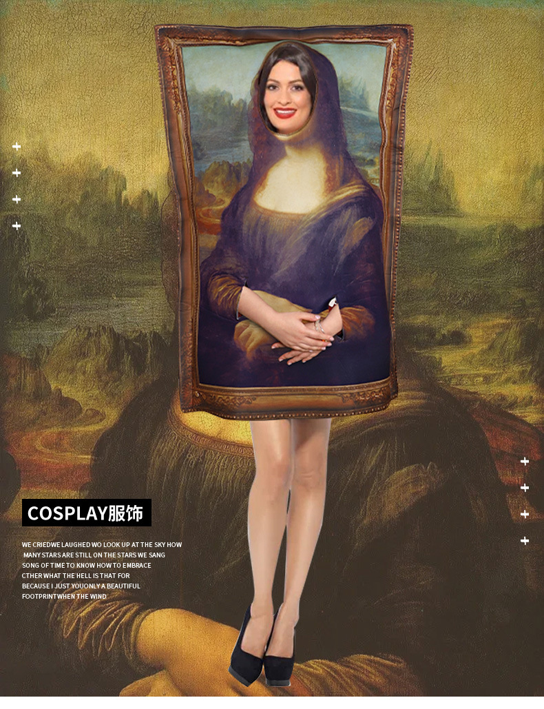 국경 간 모나리자 코스프레 의상 재미 있은 장난 벽화 의상 할로윈 코스프레 인형 의상